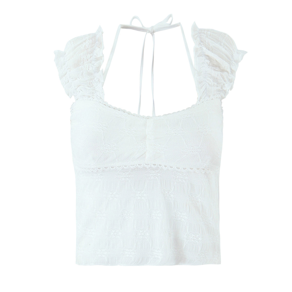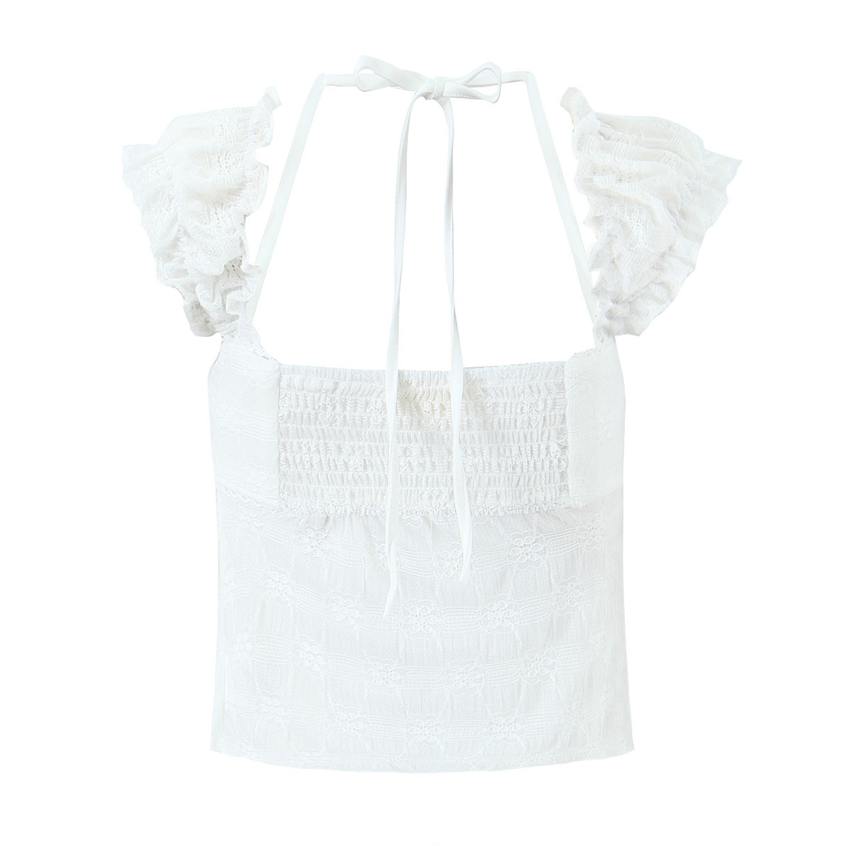 Puff Sleeve Lace-up Top for Women Small Lace Elastic Knitted Vest