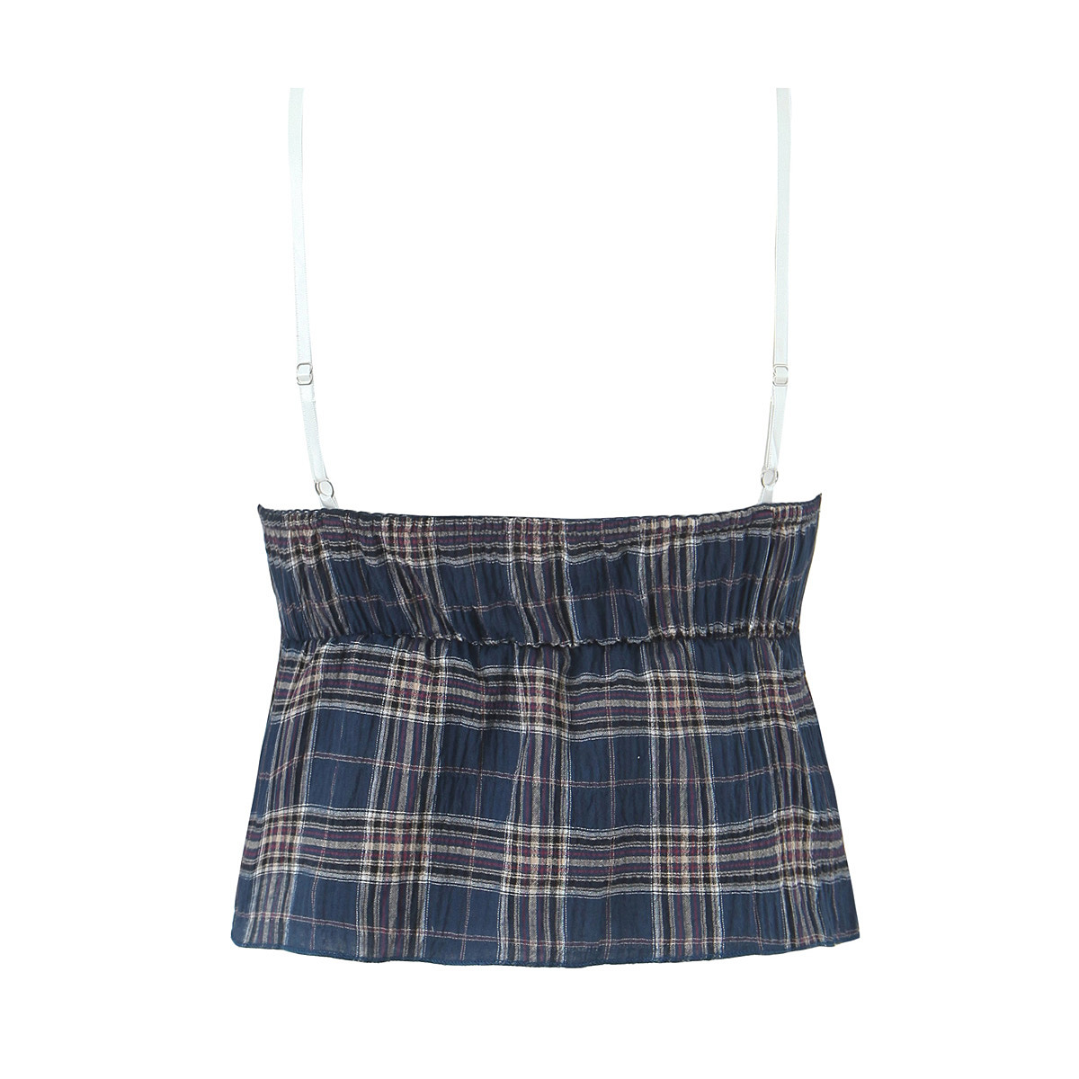 Retro plaid drawstring butterfly strap top with small camisole