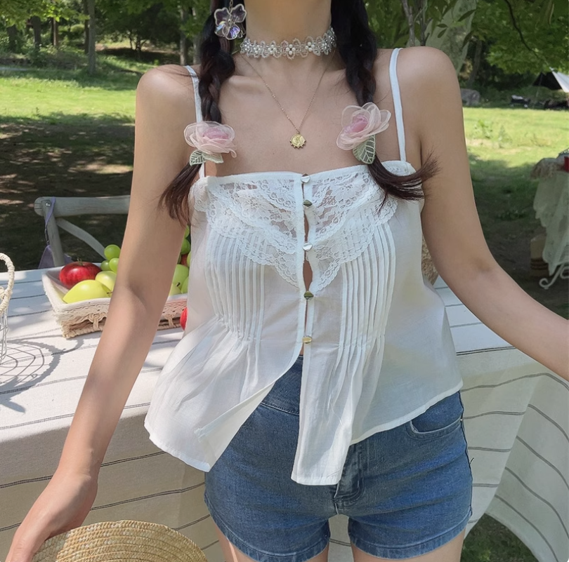 Retro holiday style hot girl sexy slim floral strappy camisole