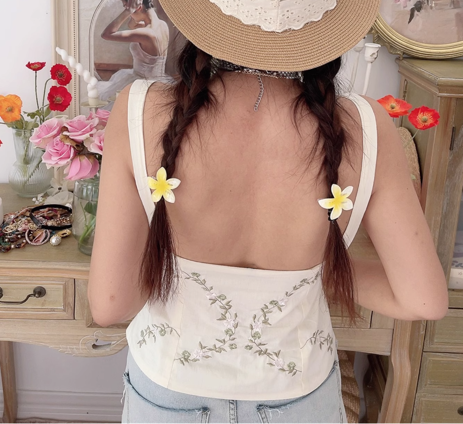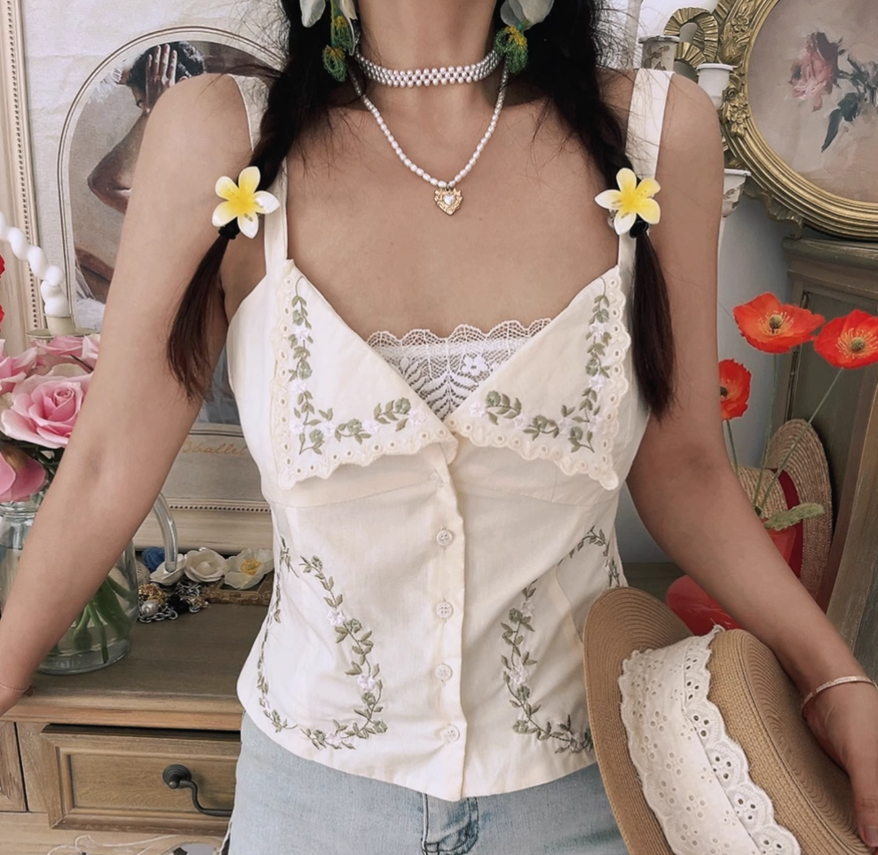 Retro pastoral style printed square neck puff sleeve slim fit top