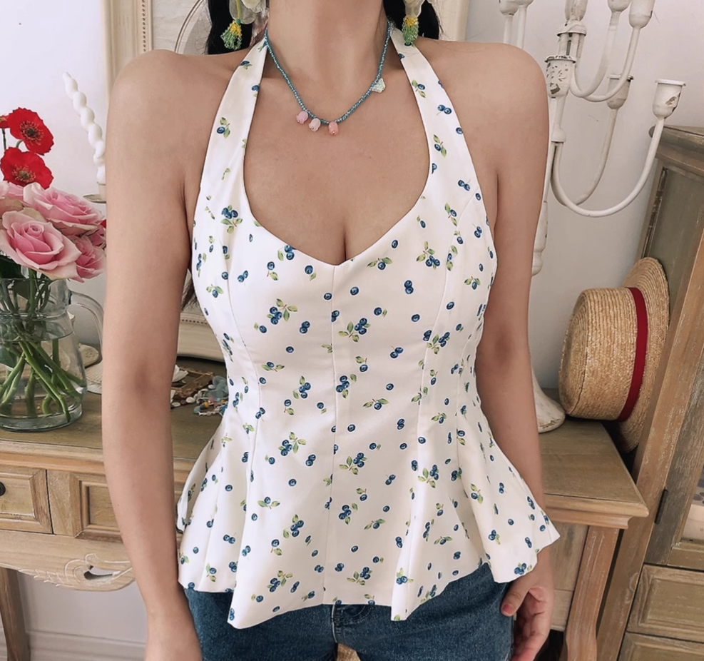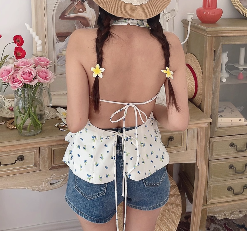 Sexy Backless Floral Print Halter Neck Tank Top