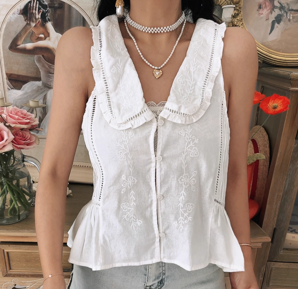 Bowknot puff sleeve shirt Square collar puff sleeve short sleeve shirt