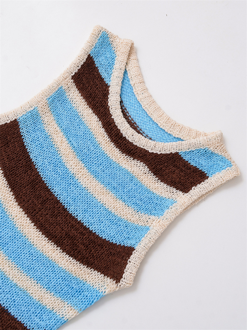 Round neck solid color sleeveless pullover women's designer knitted sweater