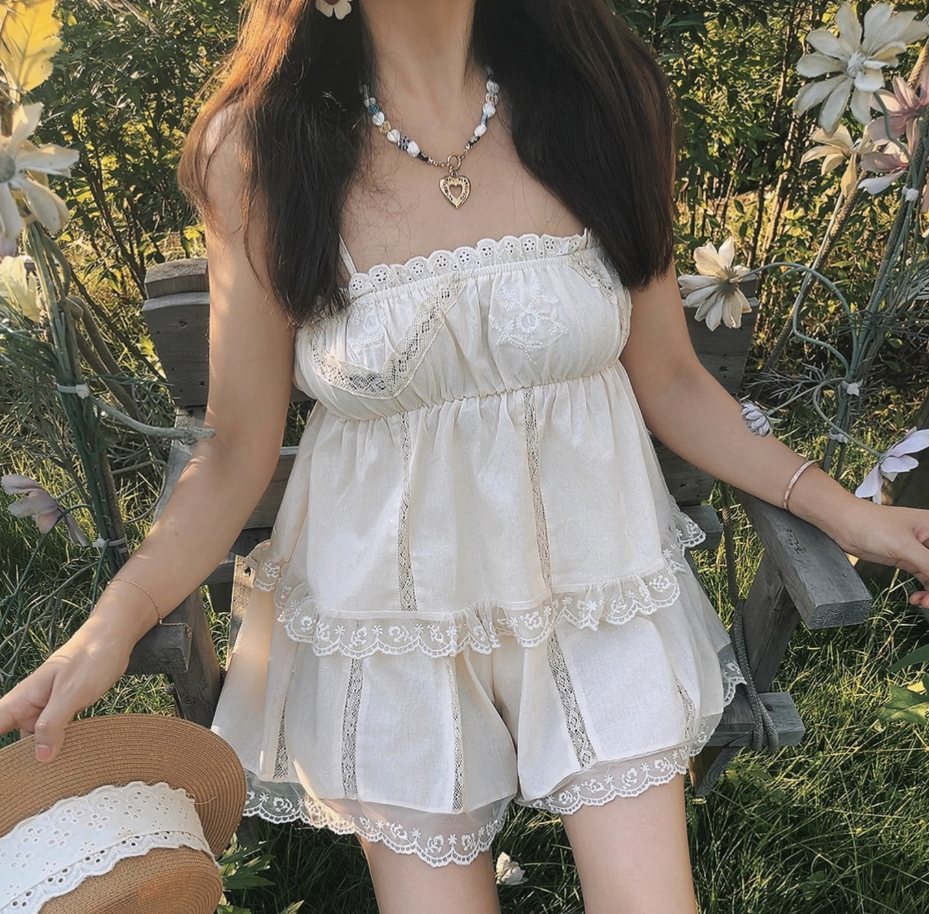 Fashion Sexy Hot Girl Embroidered Suspender Top Shorts