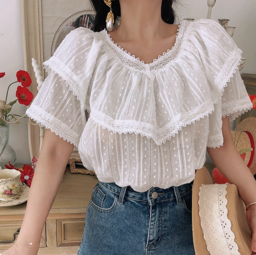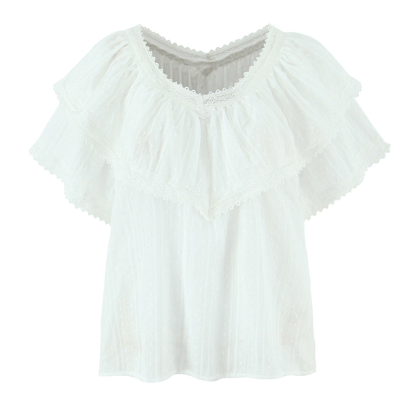 Retro Print Vacation Casual Bow-Tie Chiffon Layered Shirt