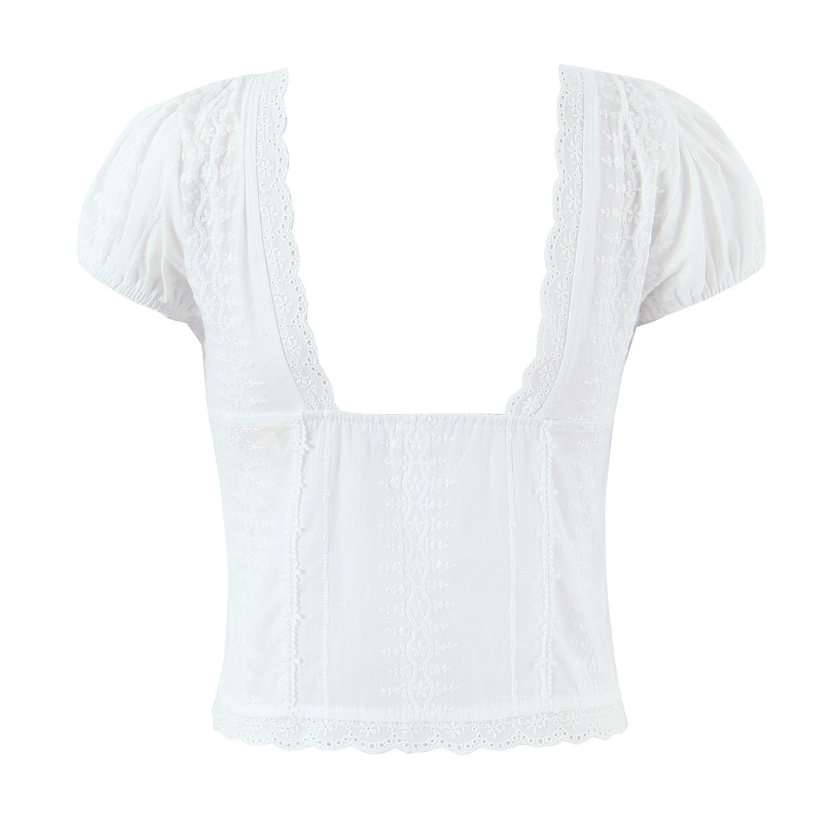 Retro pastoral style printed square neck puff sleeve slim fit top