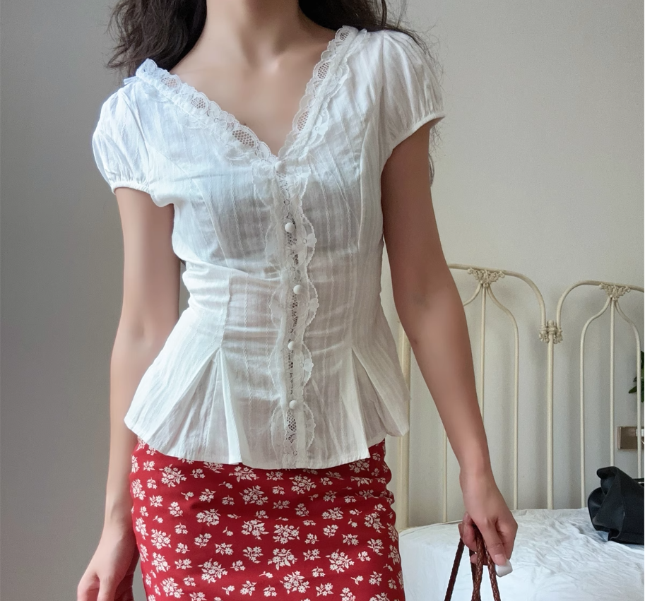 M = Shoulder 38cm, Sleeve 13cm, Chest 84cm, Waist 70cm, Length 53cm