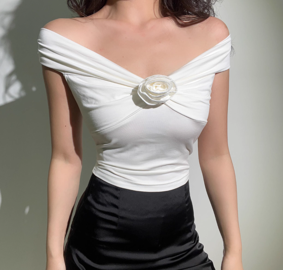 Embroidered hollow lace patchwork white top