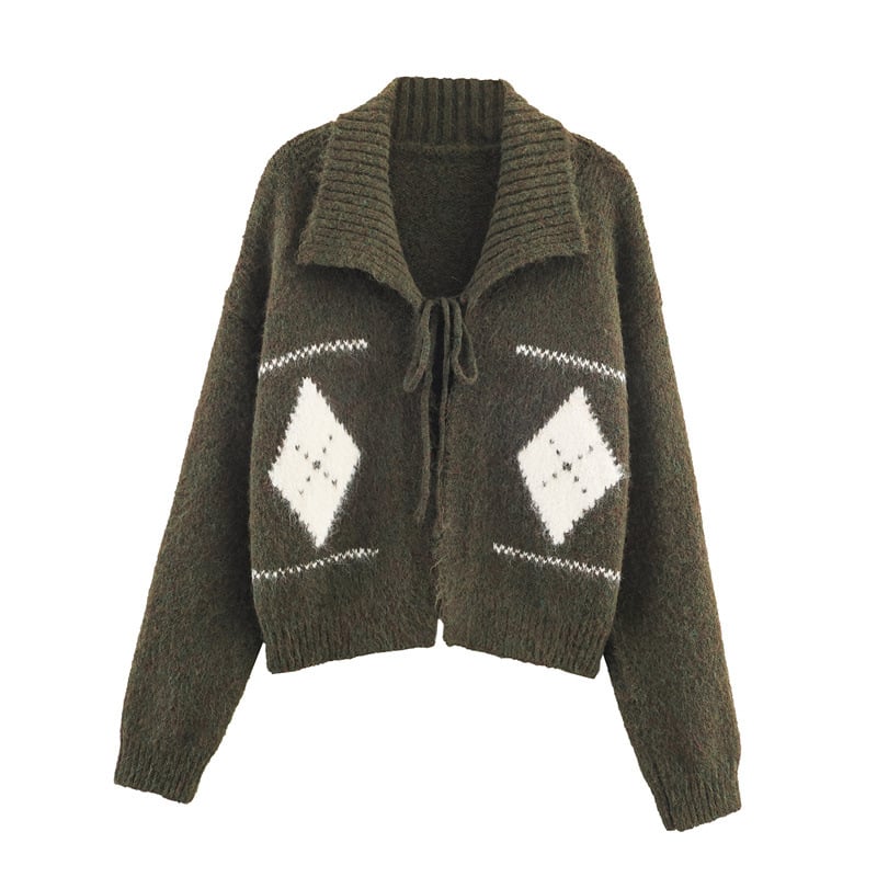 Women's fashion casual loose versatile jacquard tie knitted cardigan
