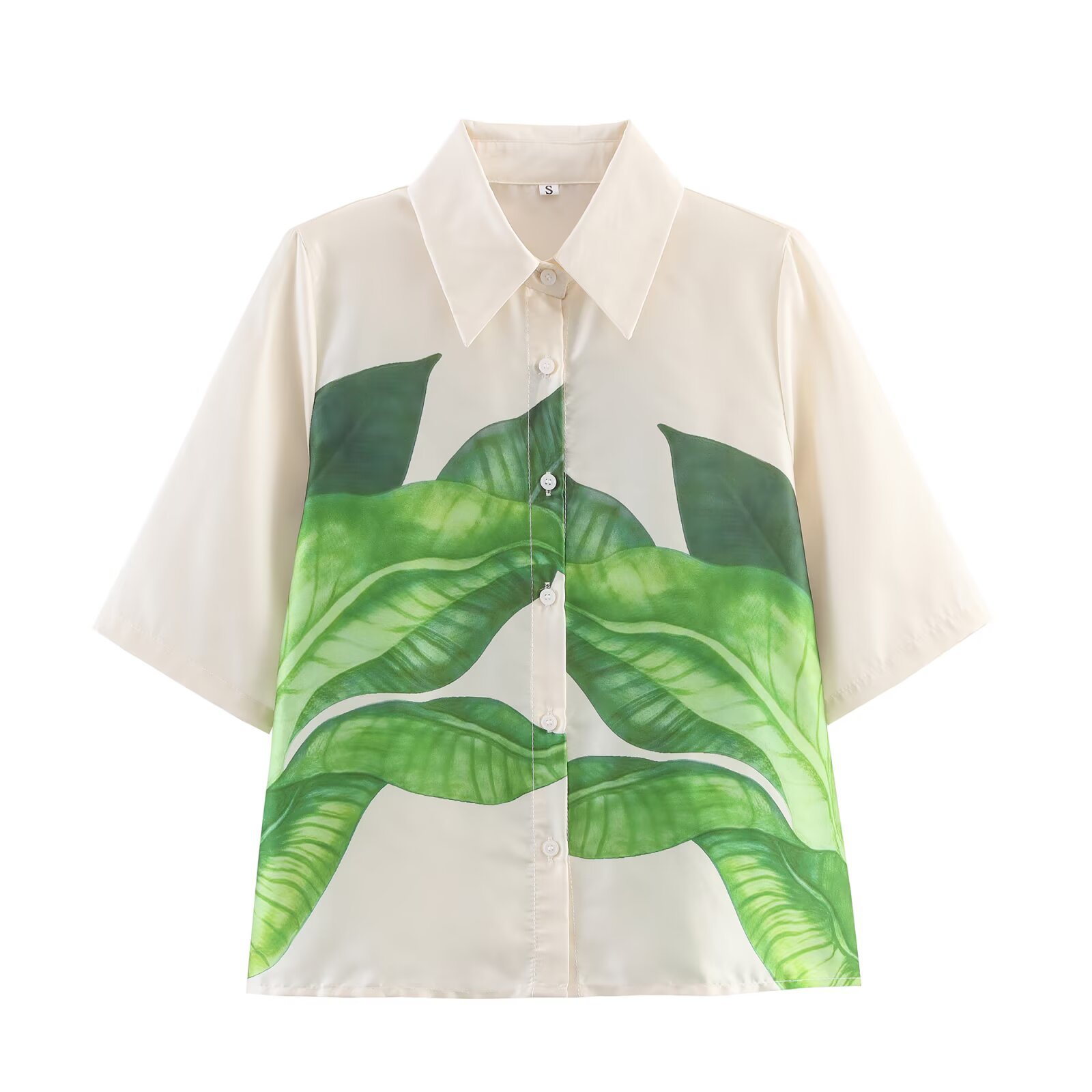 Lapel short-sleeved satin printed shirt
