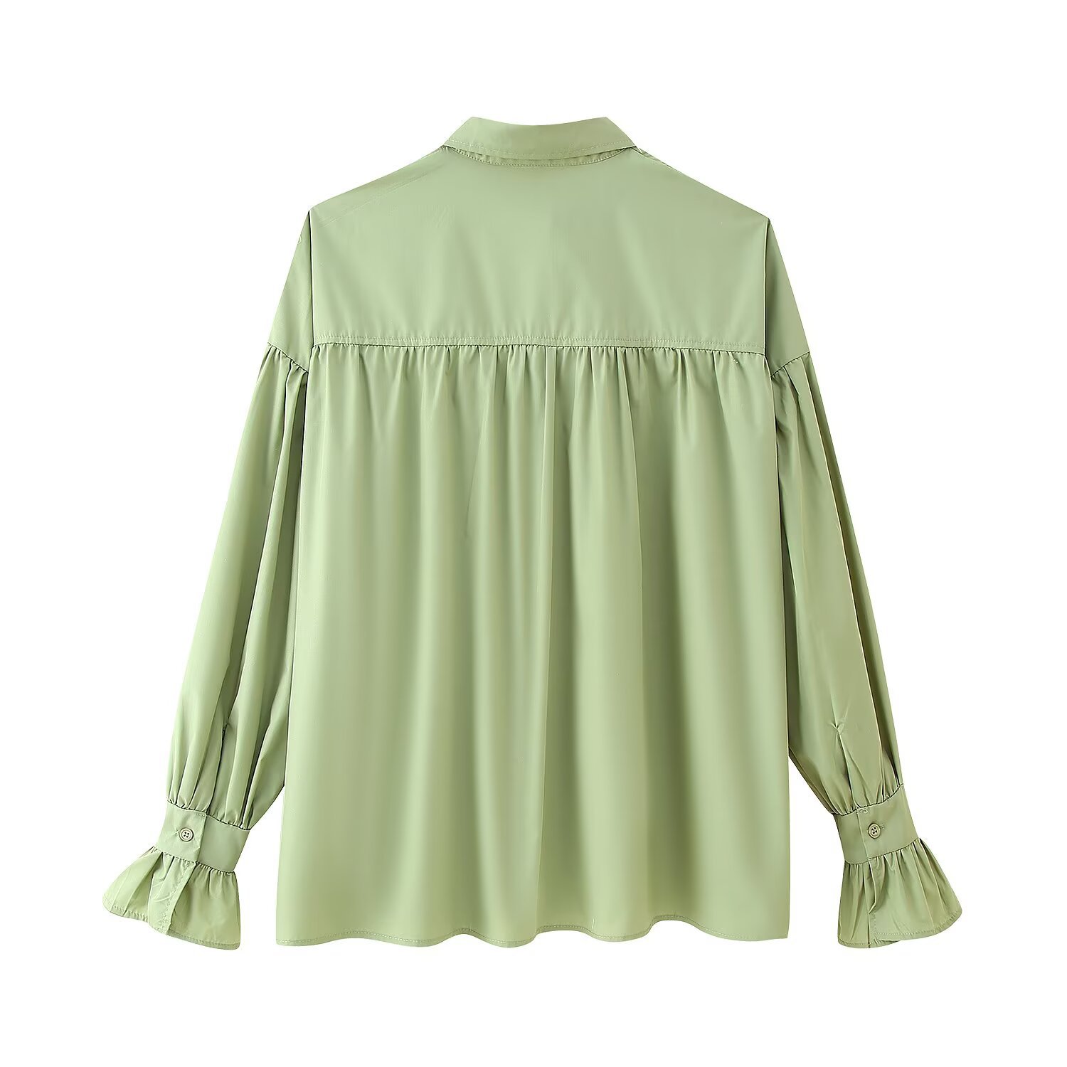 Drop shoulder pleated lapel patchwork flared sleeve shirt