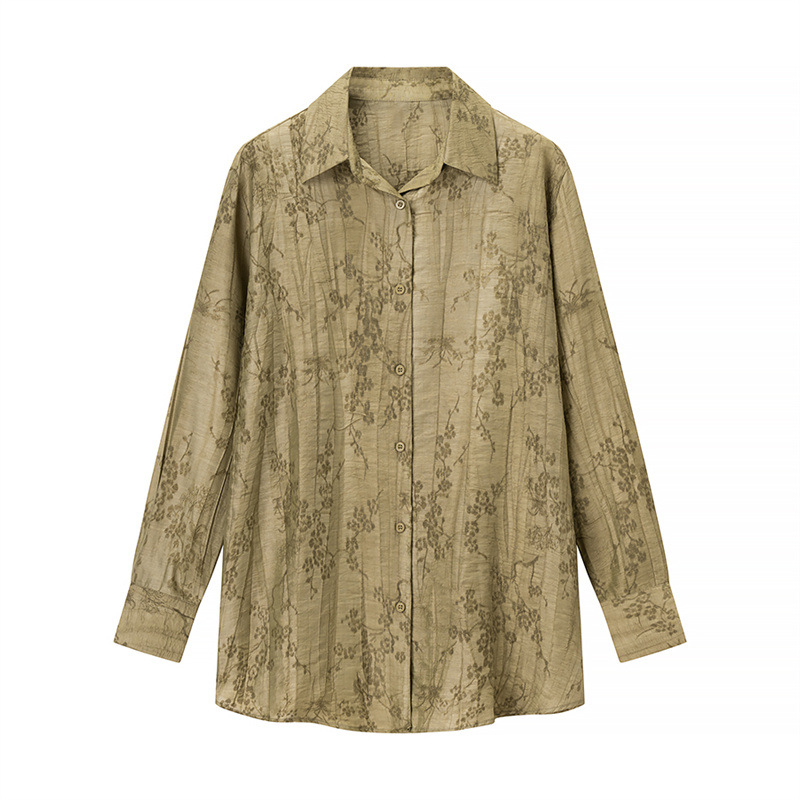 Fashionable casual long-sleeved V-neck floral print shirt