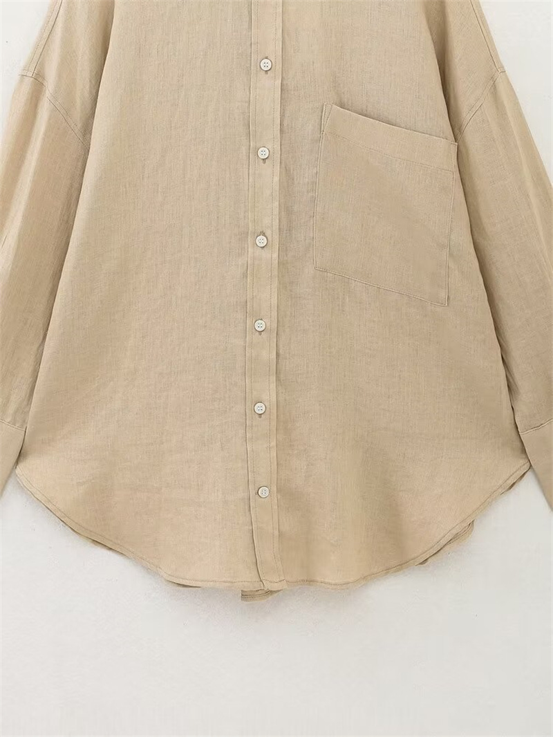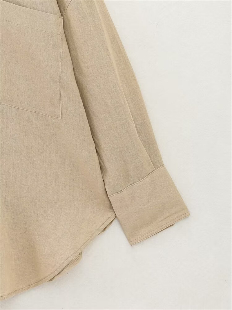 Lapel solid color pocket embellished long-sleeved single-breasted shirt