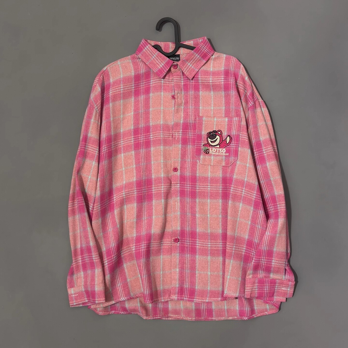 Rose Red Cartoon Bear Plaid INS Long Sleeve Shirt
