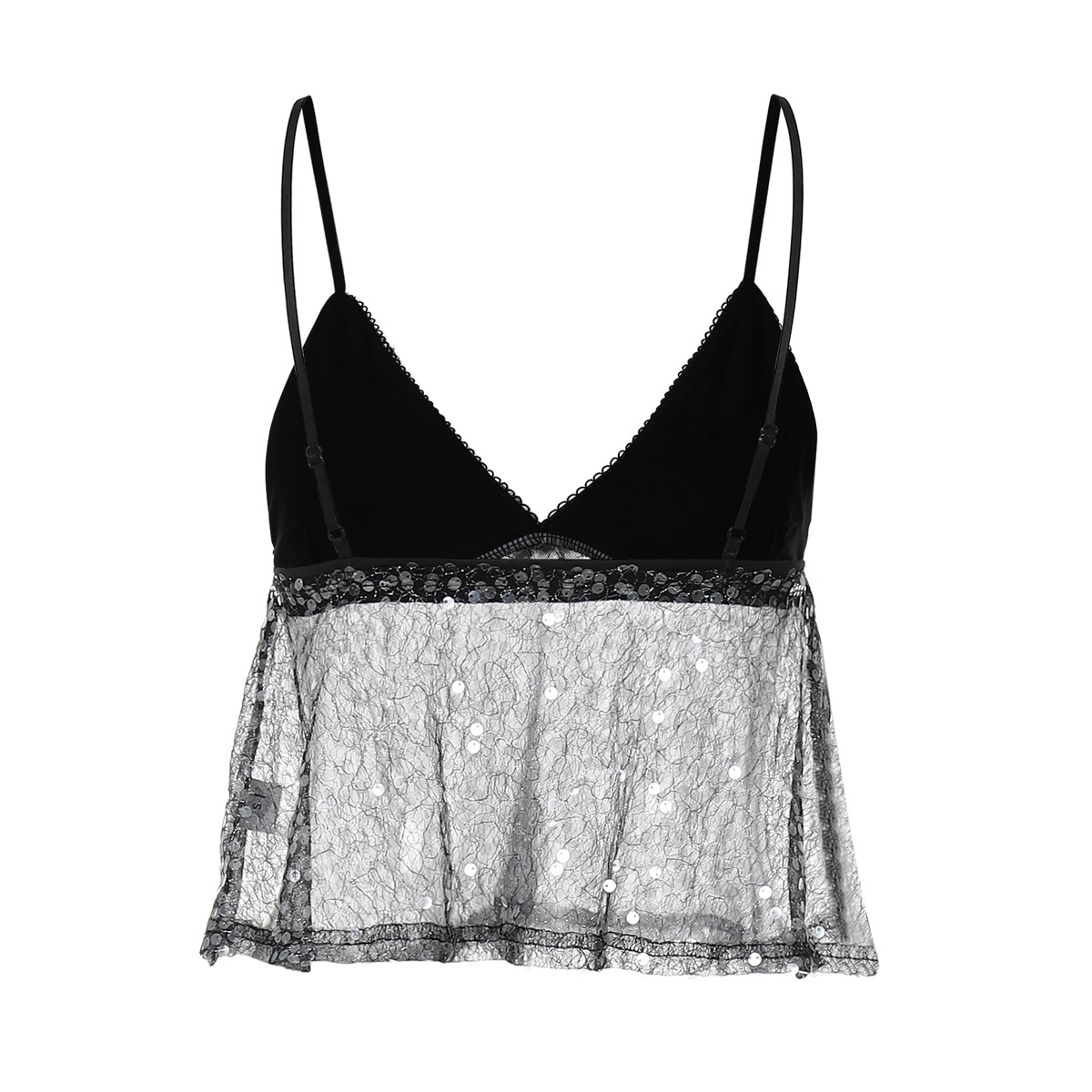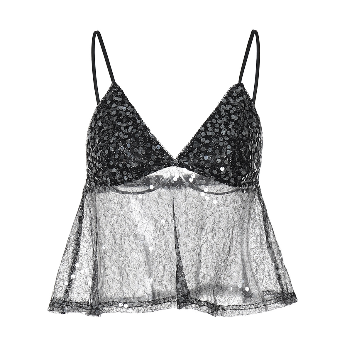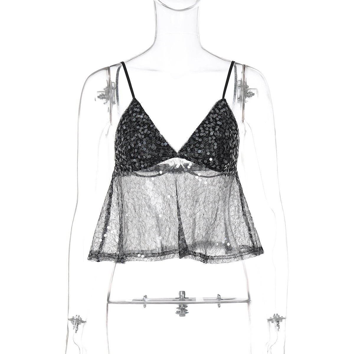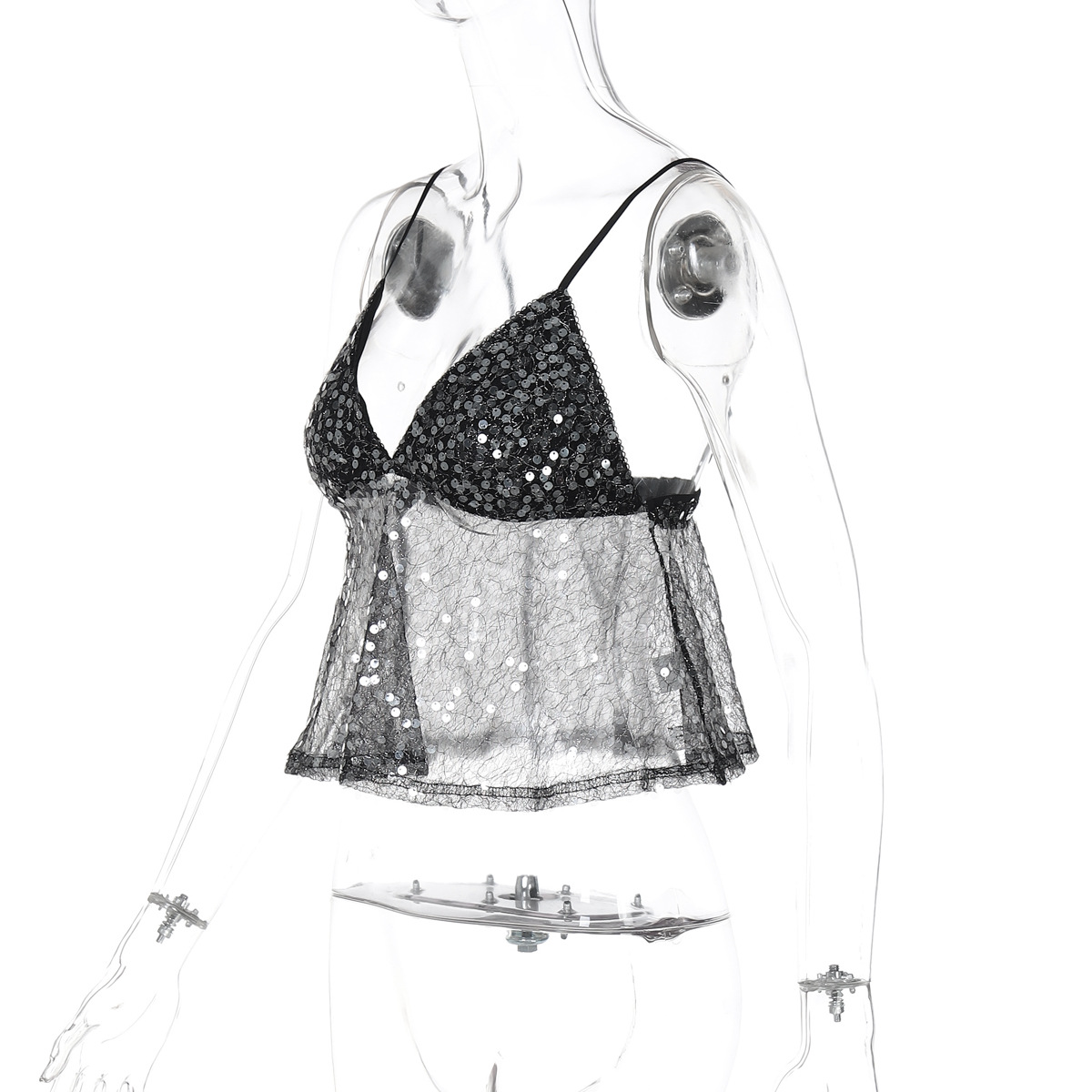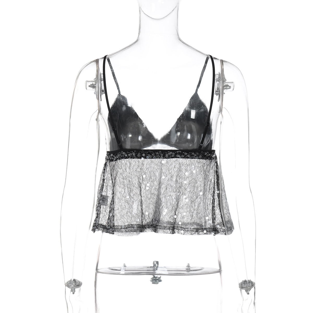 Puff Sleeve Lace-up Top for Women Small Lace Elastic Knitted Vest