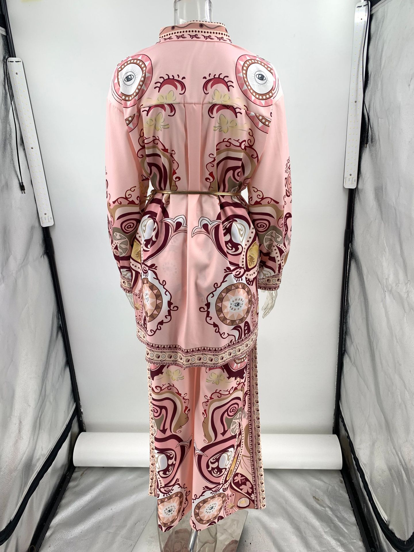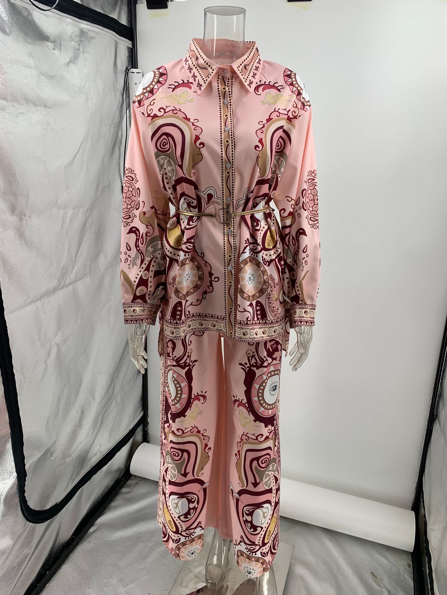 Stylish graffiti print lapel shirt and trousers two-piece set