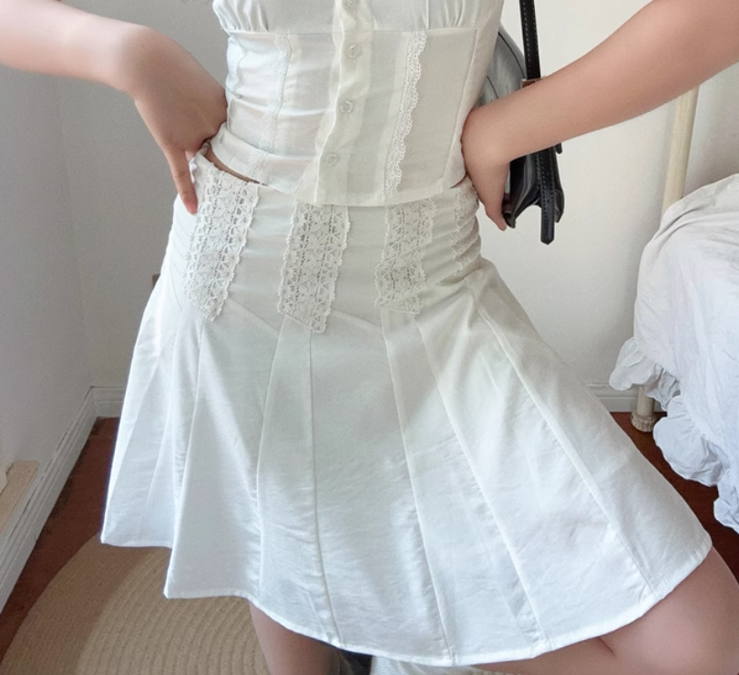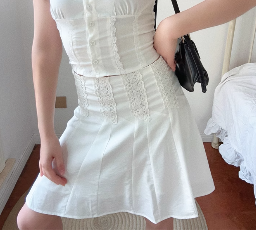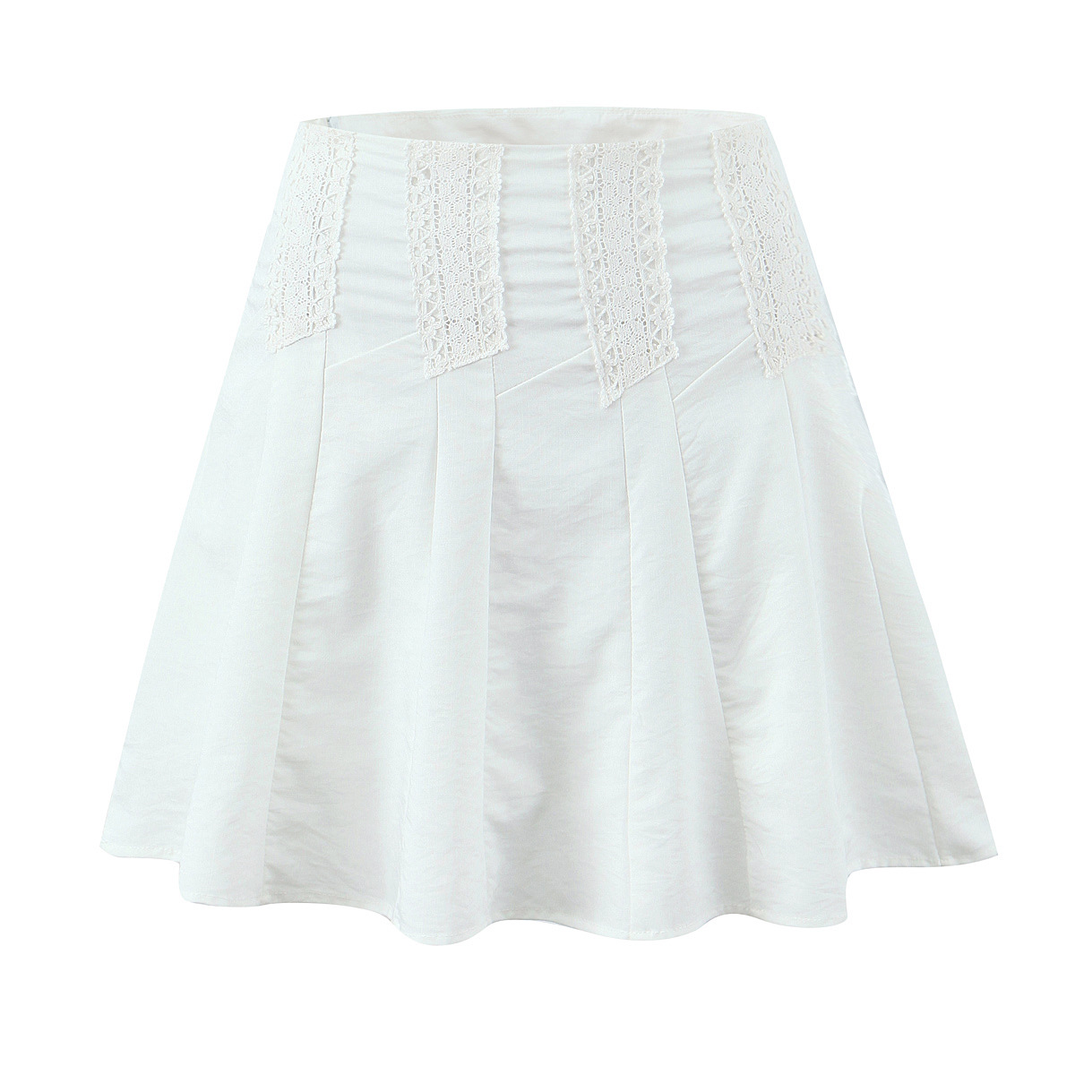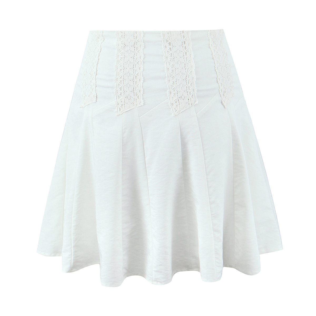 Retro style elegant temperament hollow hook flower elastic waist white long skirt
