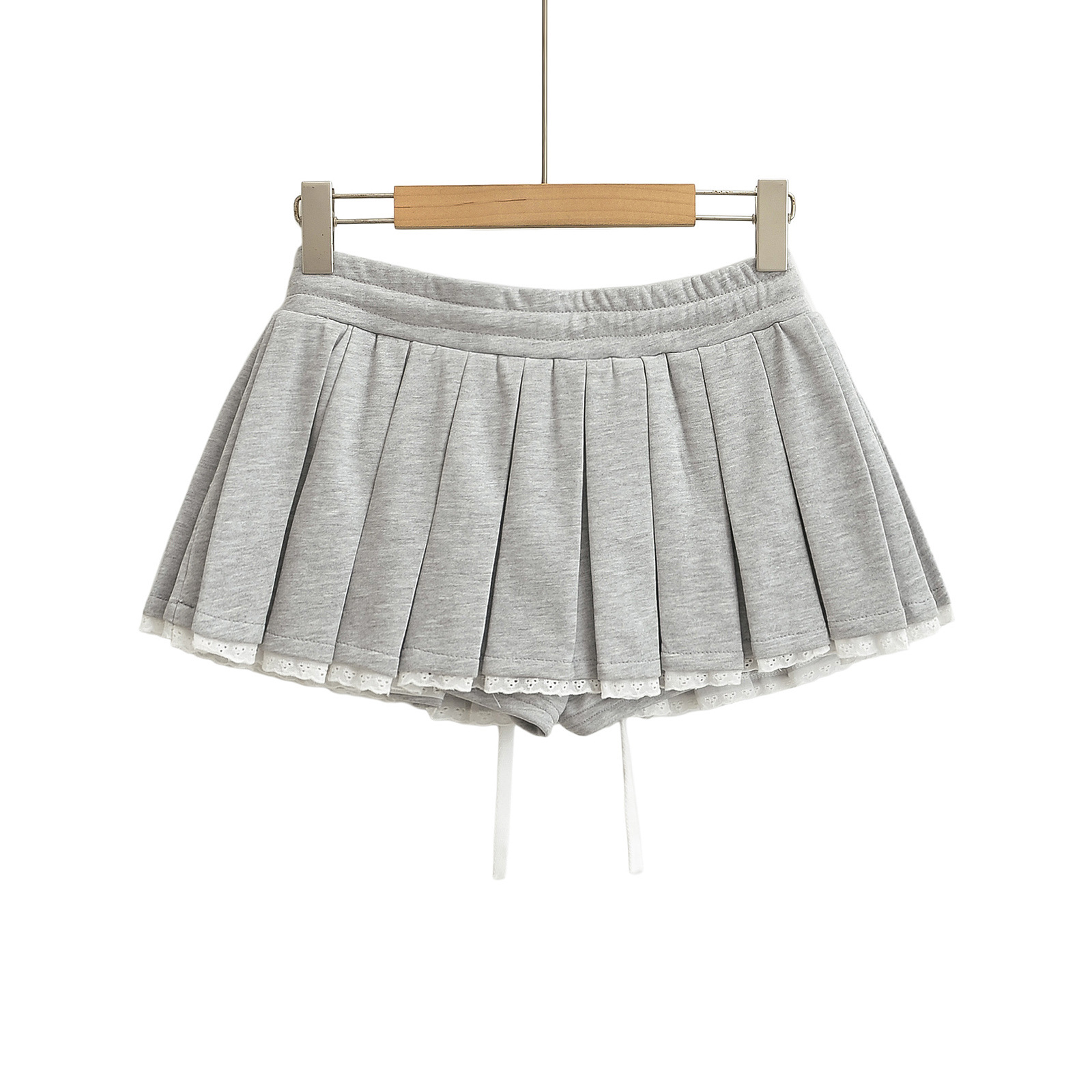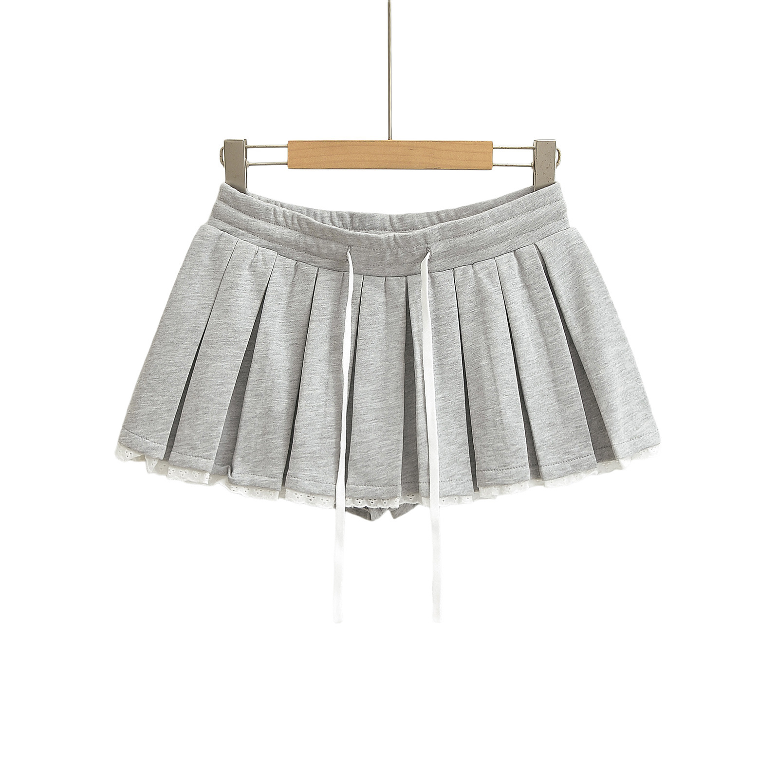 High waist drawstring anti-exposure lace pleated skirt