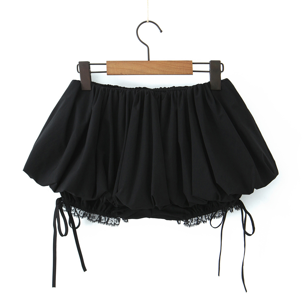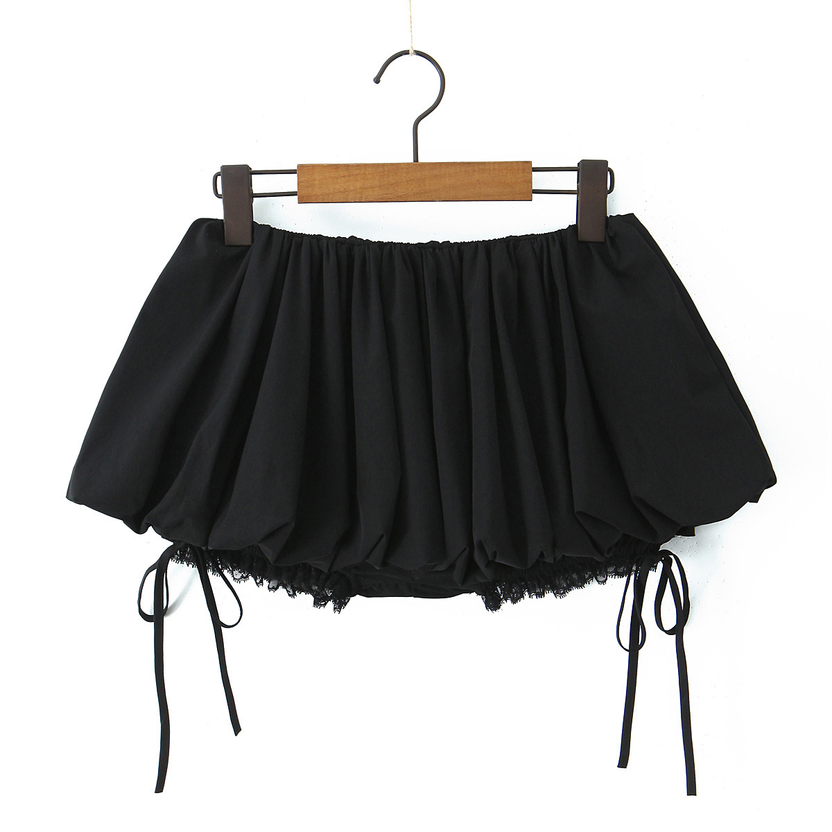 Lace elastic waist anti-exposure straps puffy mini skirt