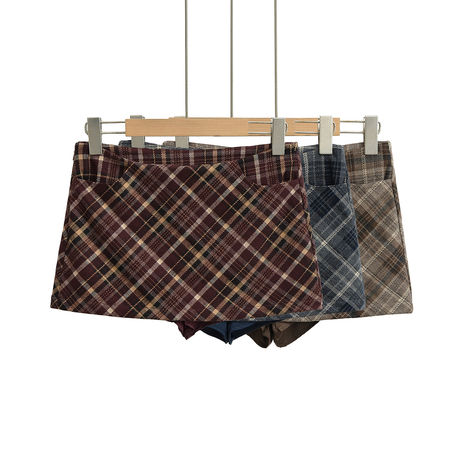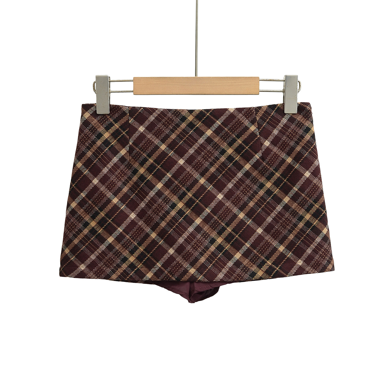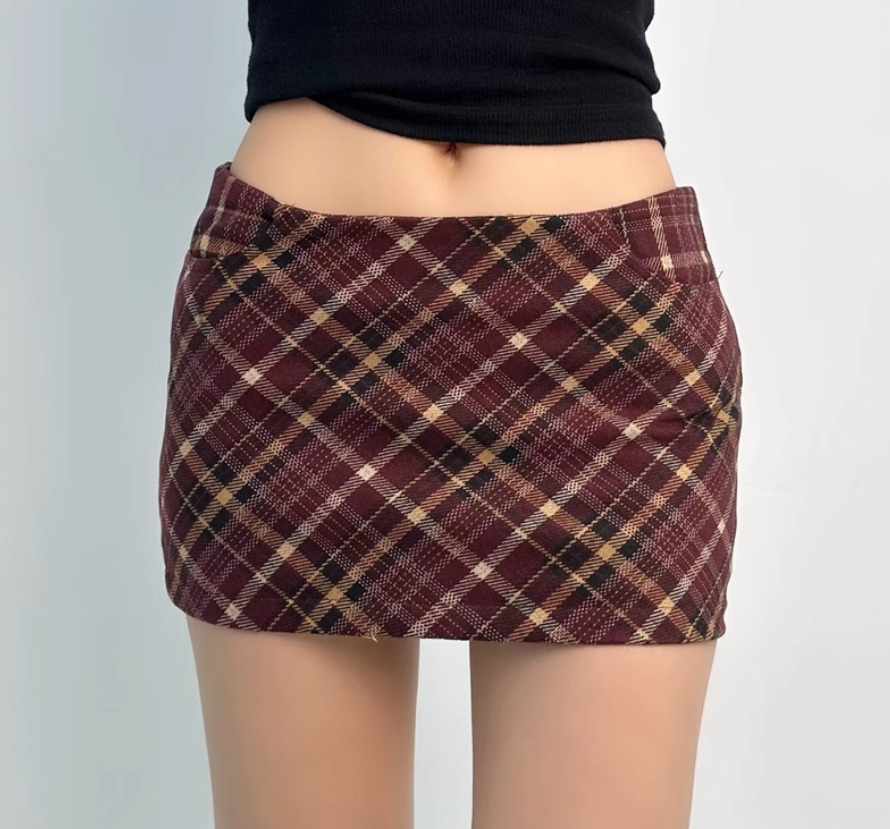 Retro sexy high waist A-line plaid ultra-short hip skirt