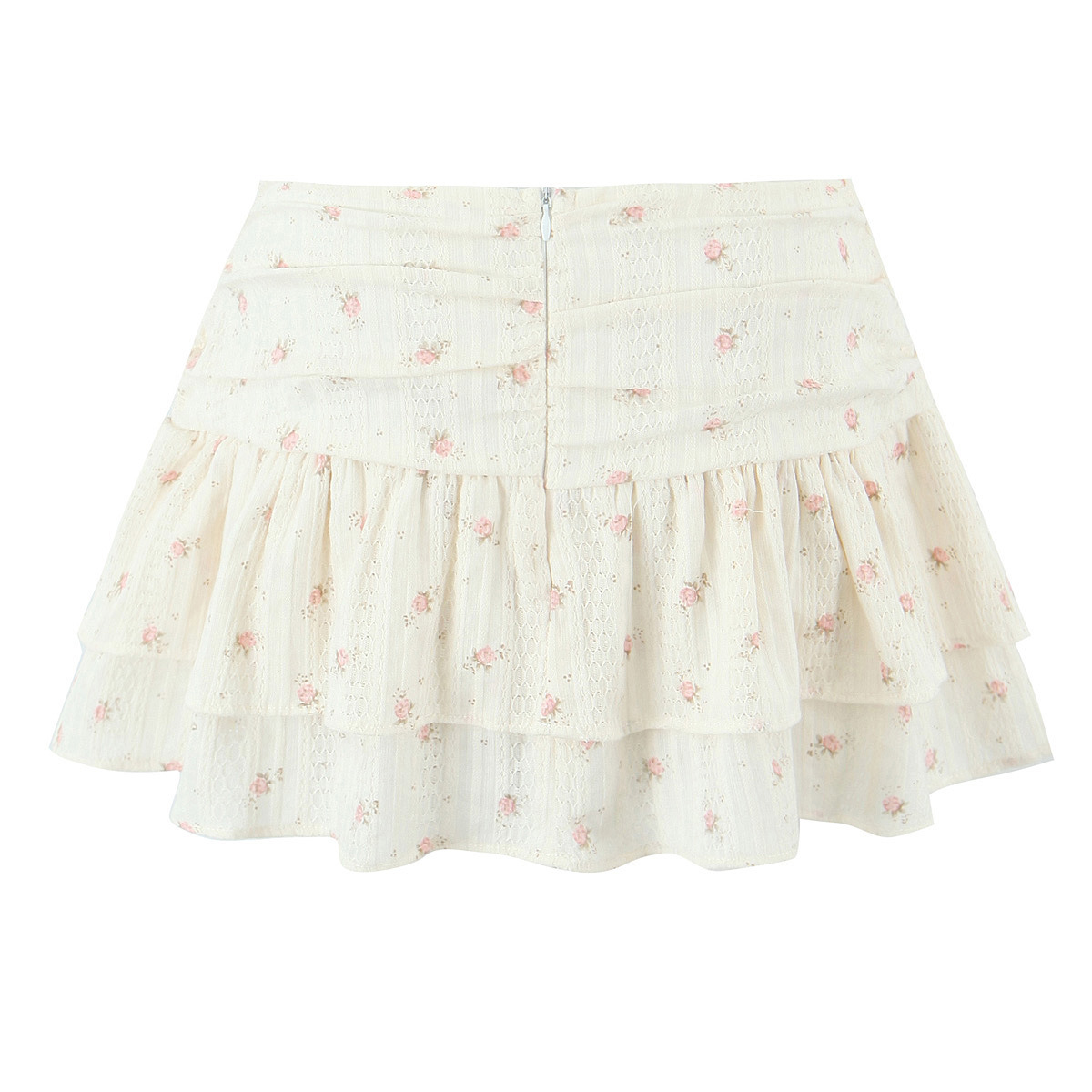 Lace patchwork puffy cloud skirt low waist drawstring anti-exposure striped short skirt