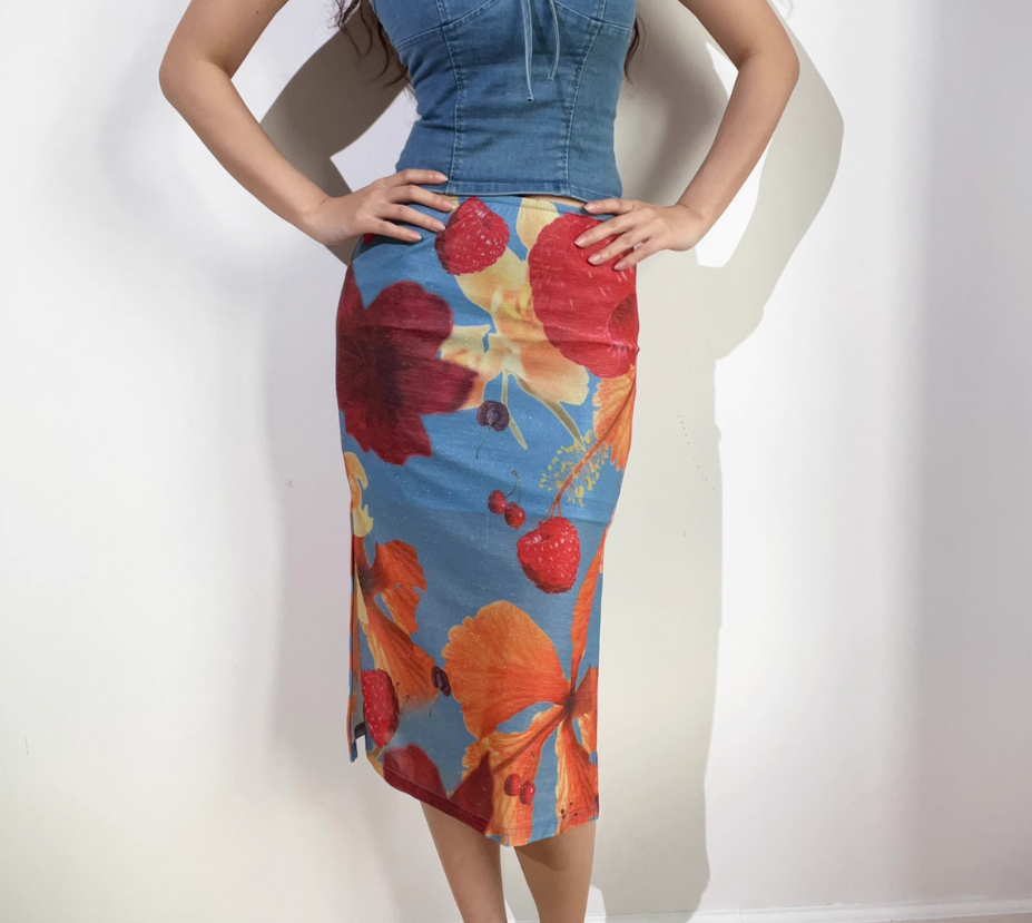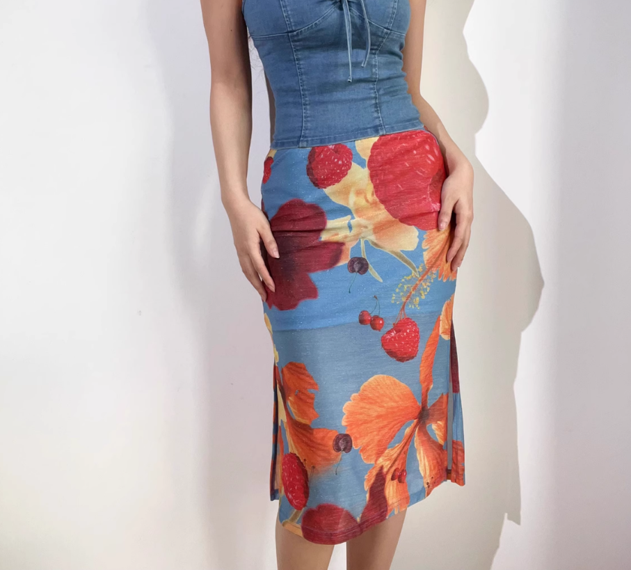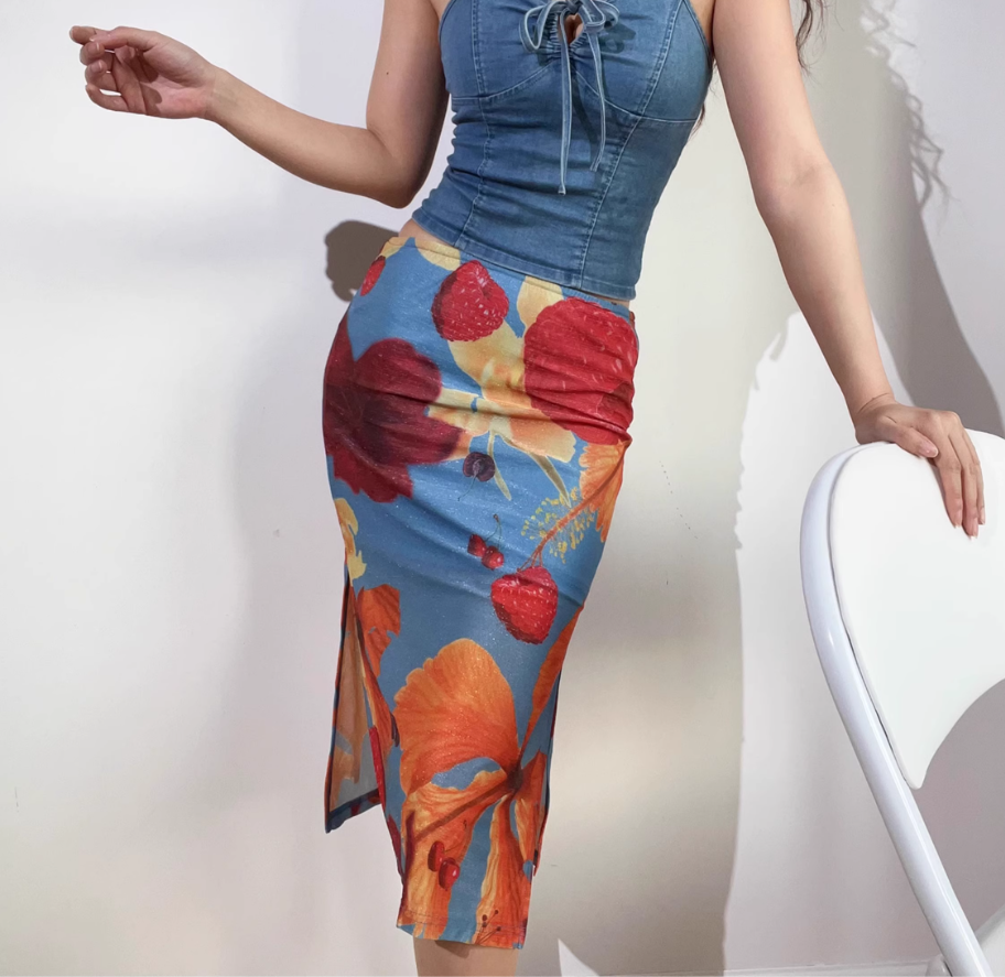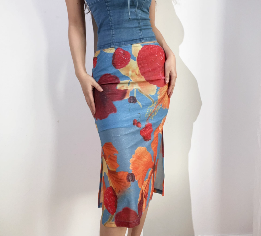 High waist printed skirt, feminine and fashionable hip-hugging long skirt