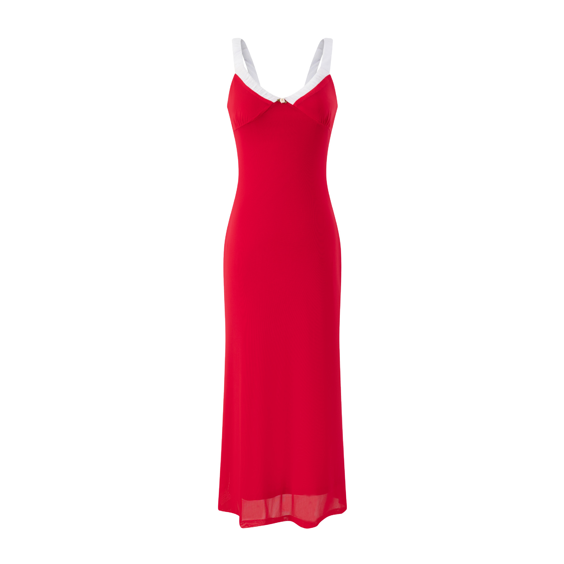 Contrast color stitching suspender dress with small flower decoration on the chest