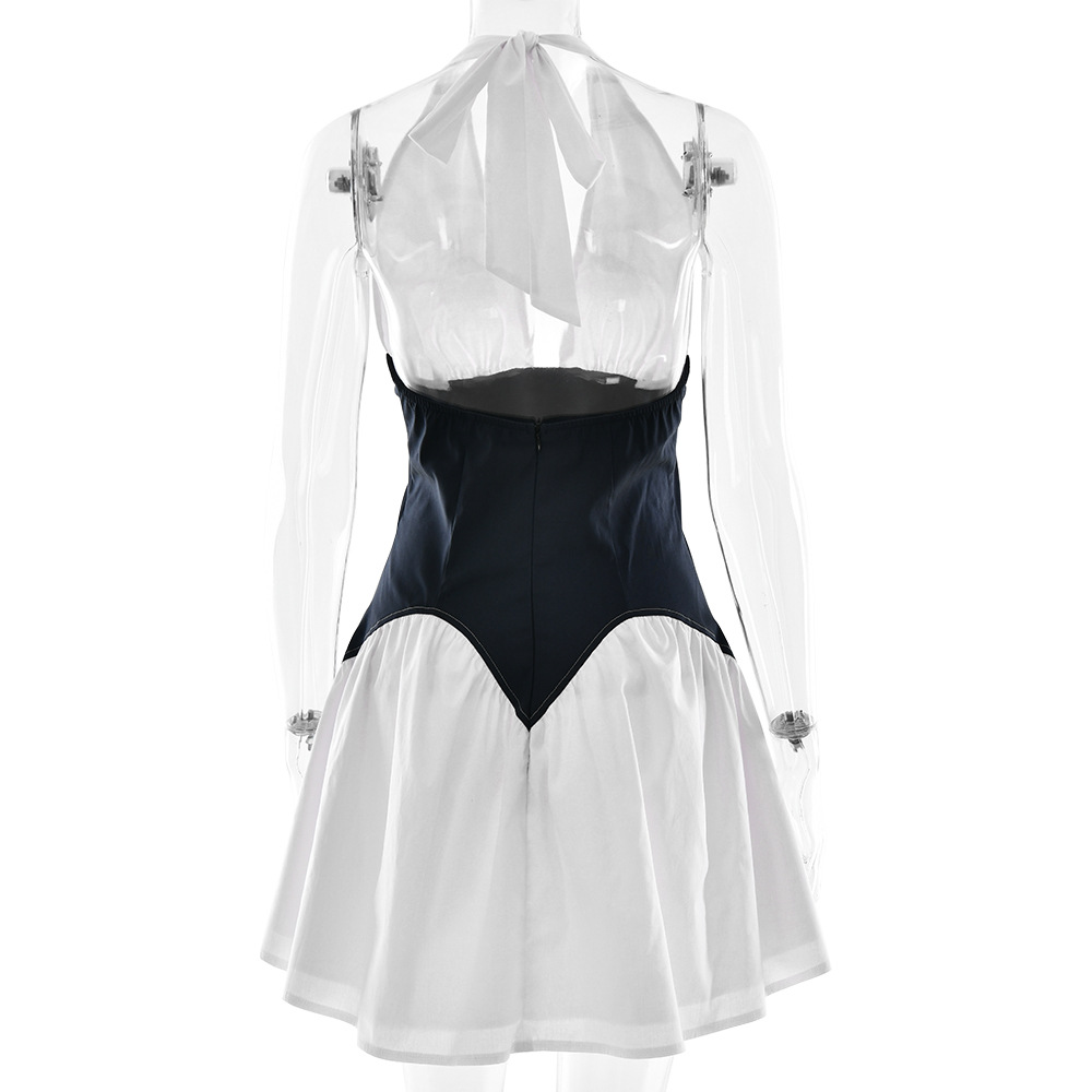 Sleeveless halter neck dress Fashion sexy hot girl backless color matching short skirt