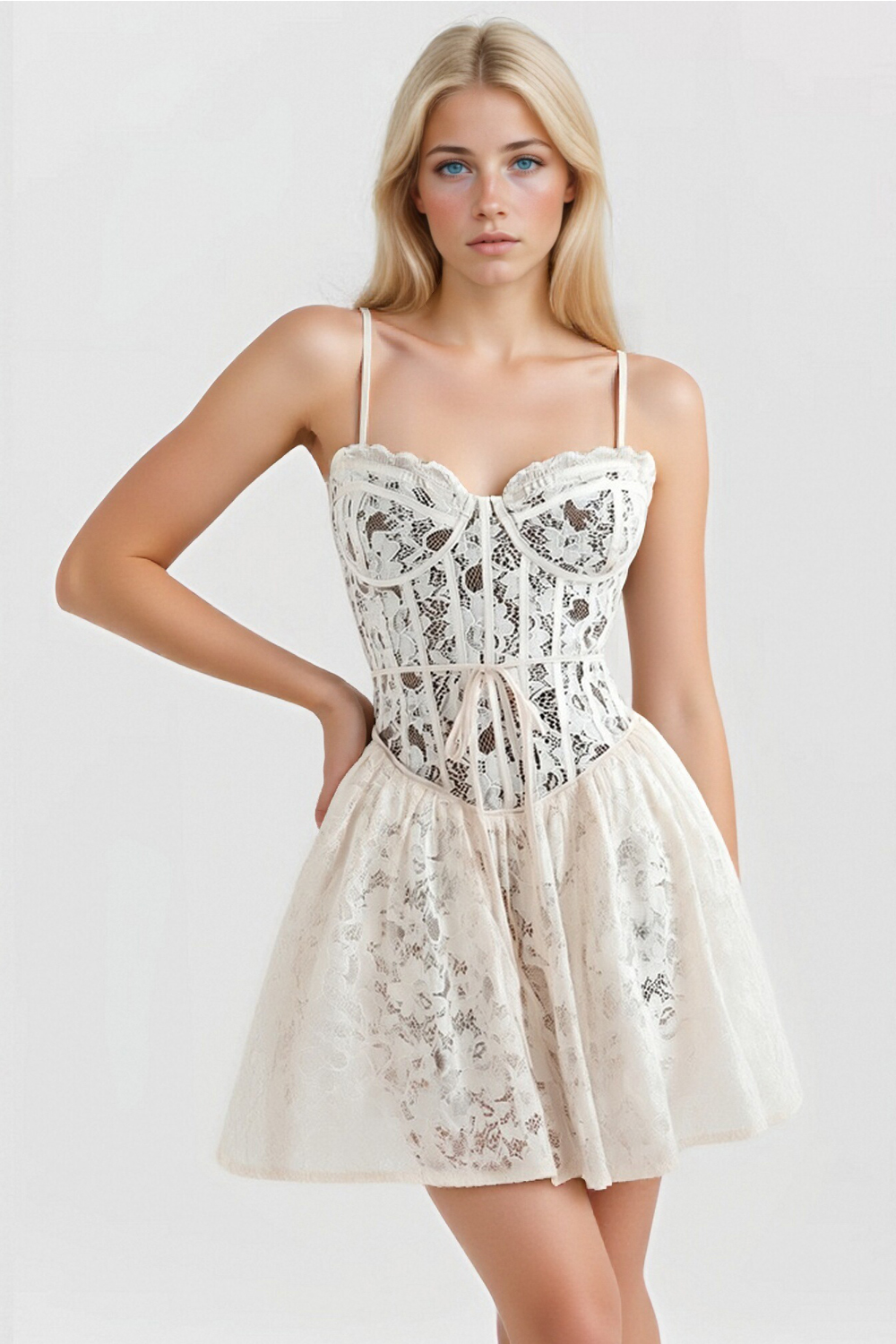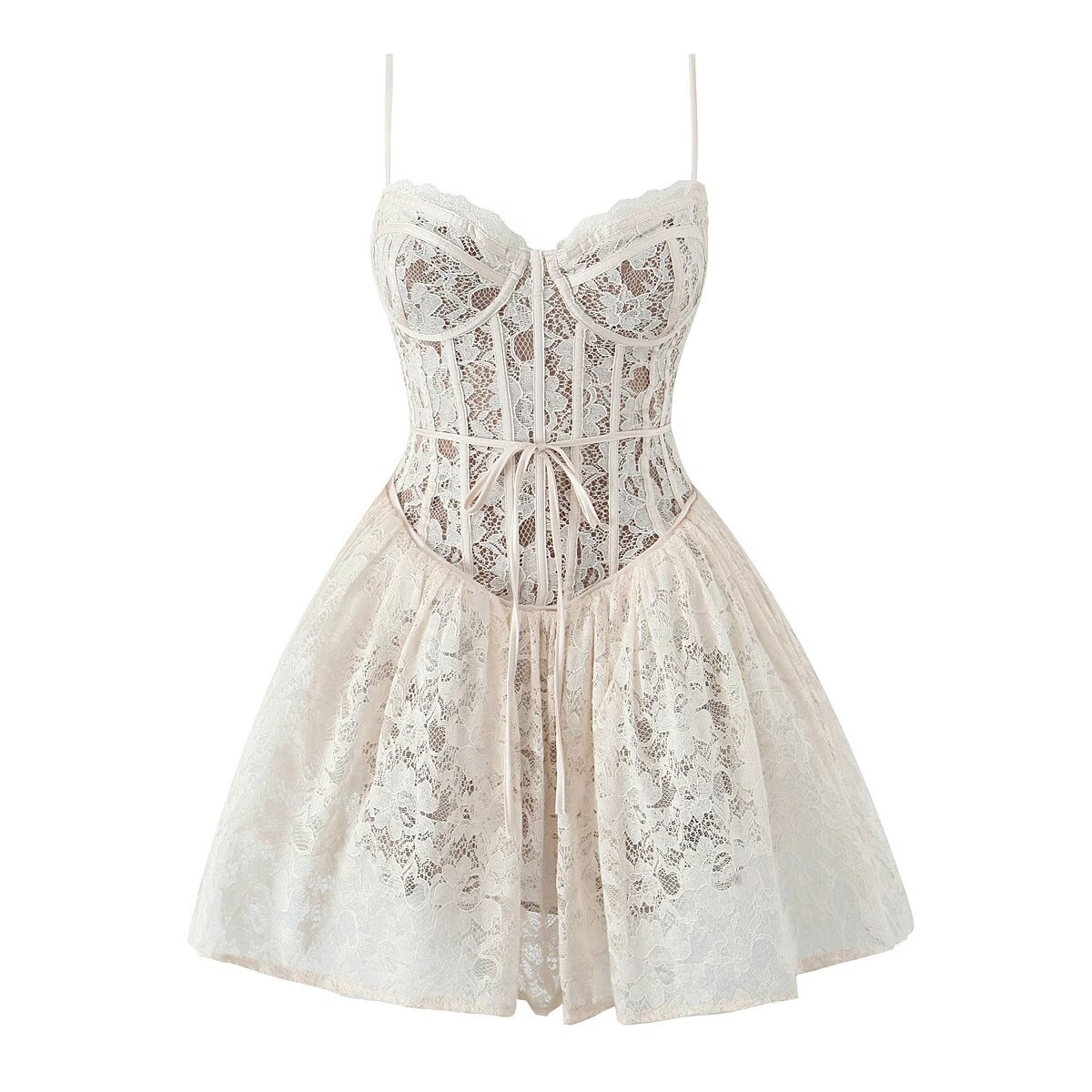 Lace suspender dress women's vacation sexy backless waist dress