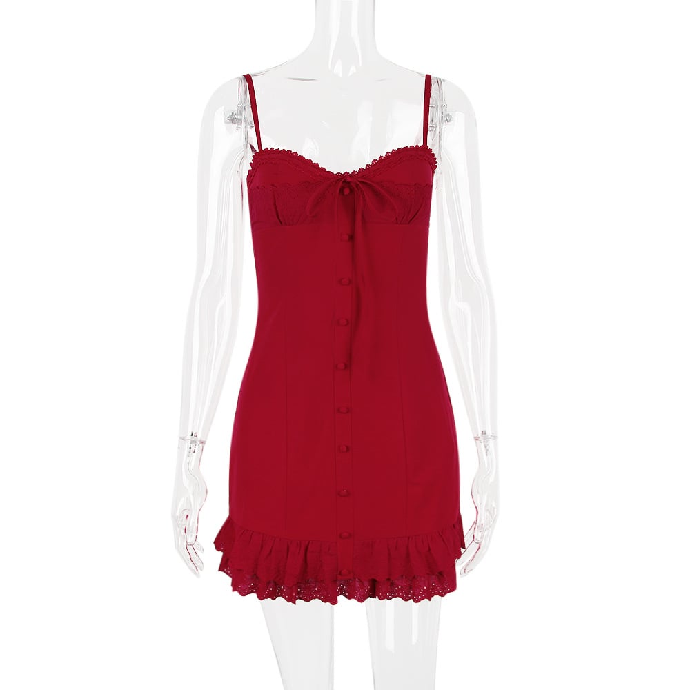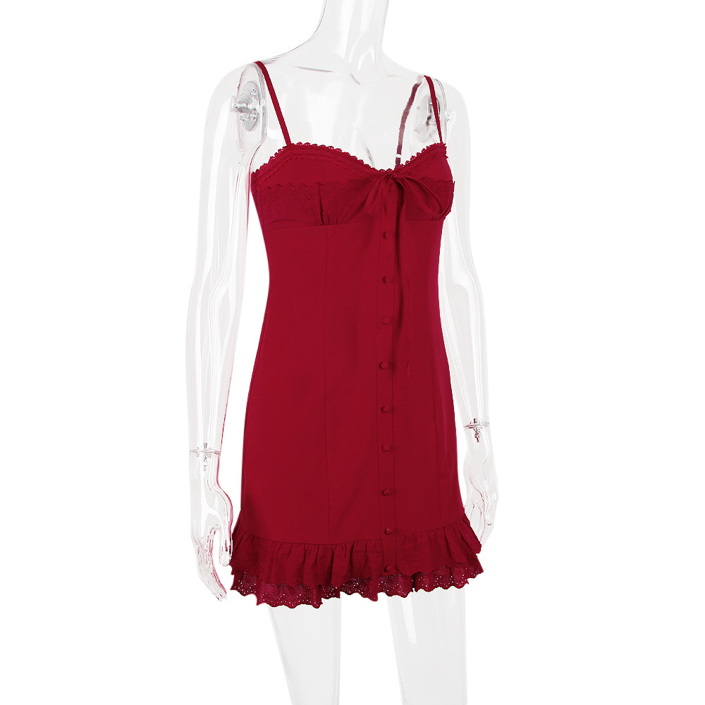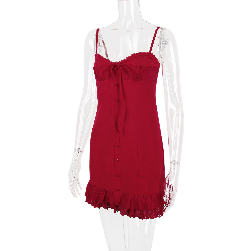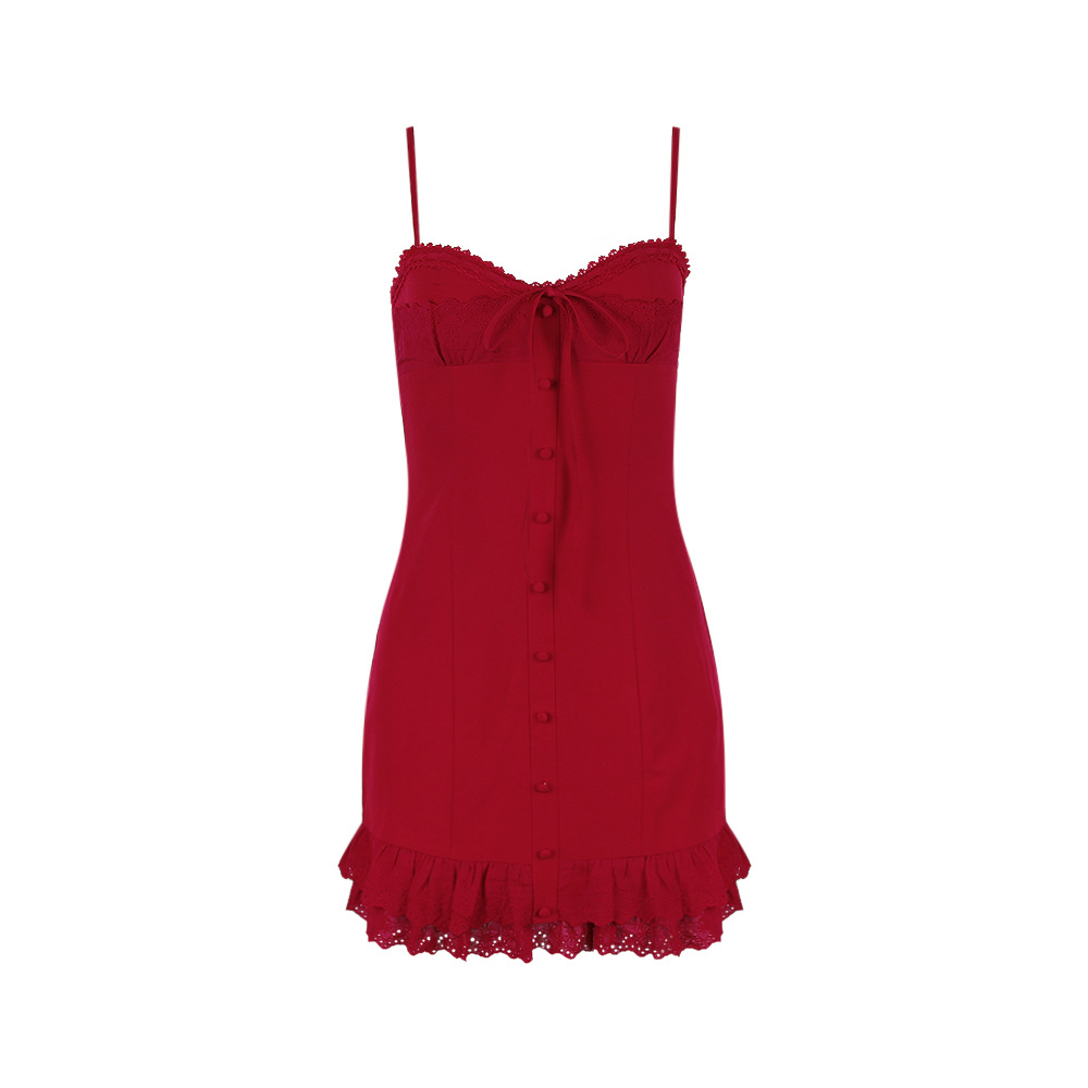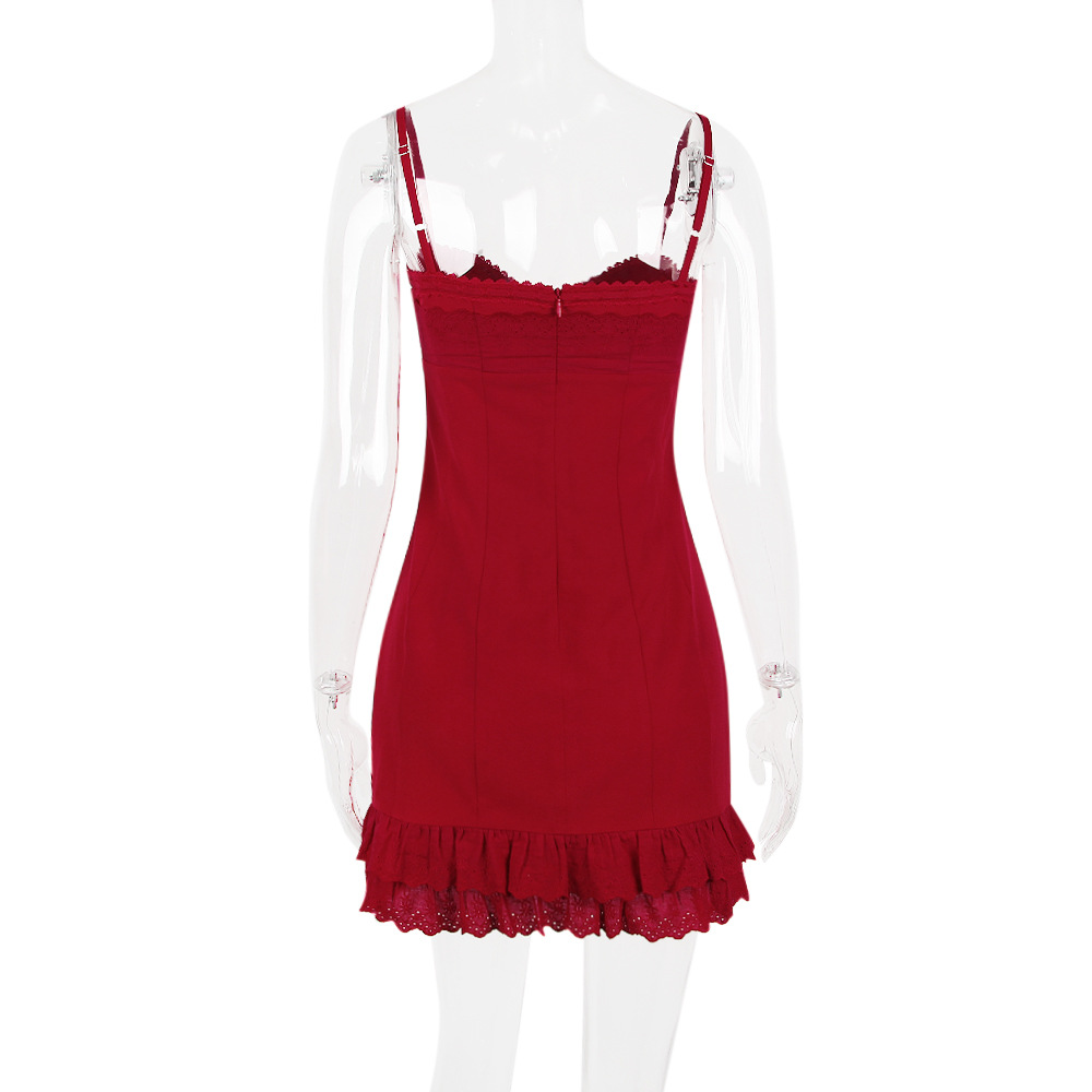 Sweet and spicy suspender skirt slim backless skirt red hot girl dress
