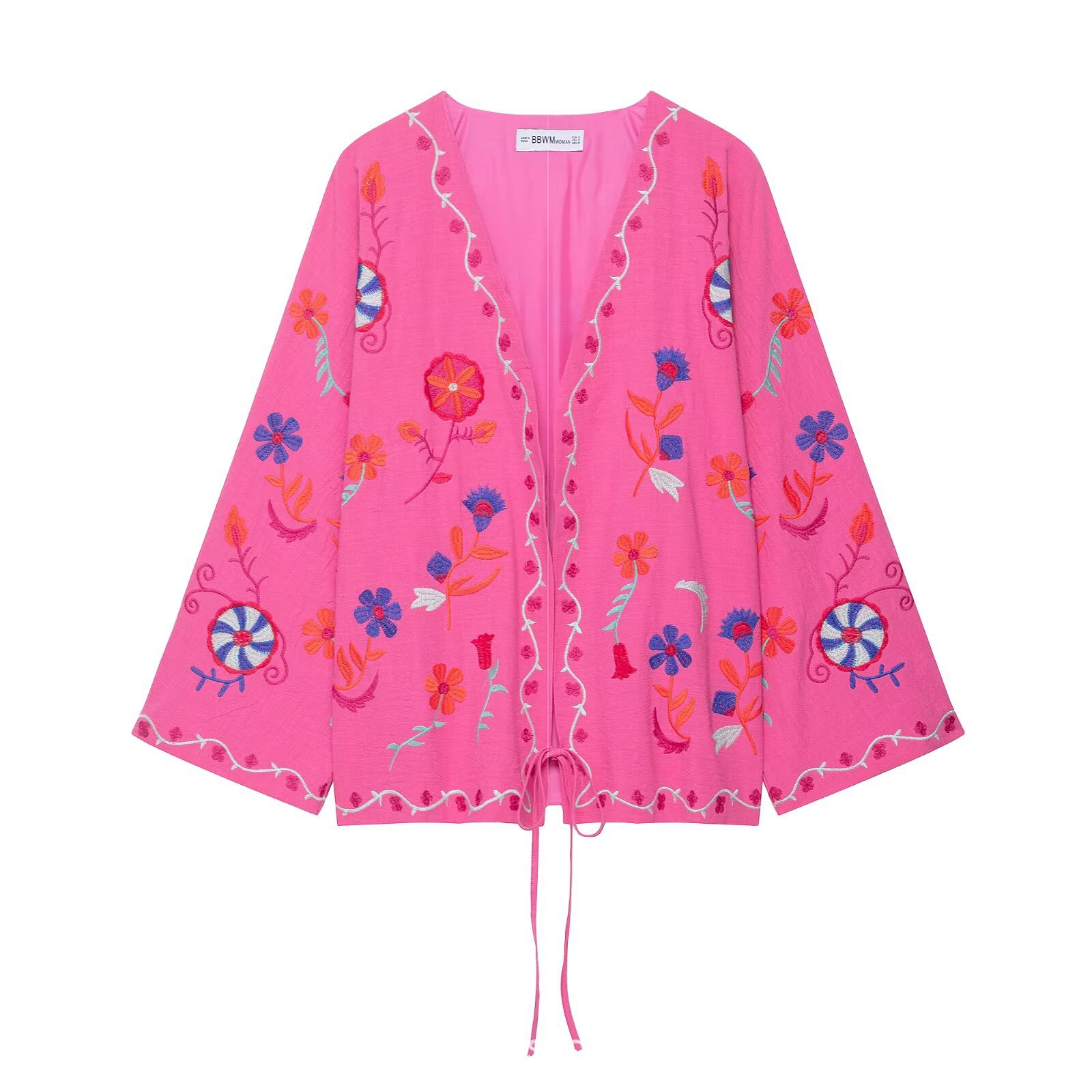Fashion Loose Embroidered Cardigan Lace-Up Jacket