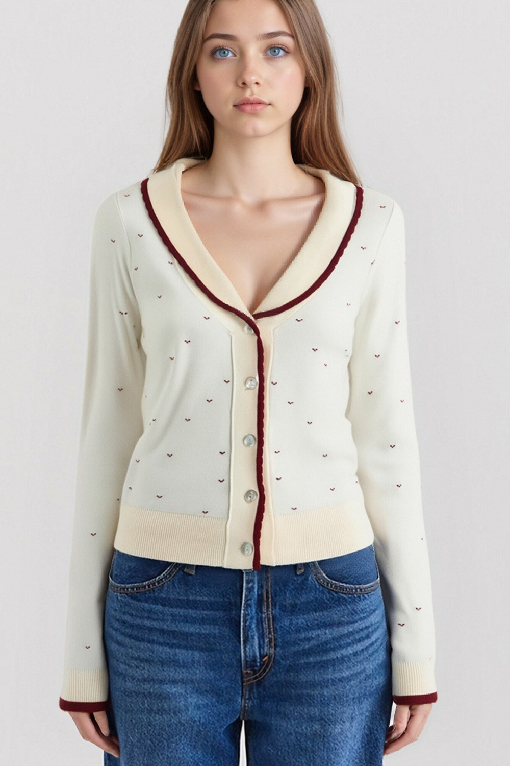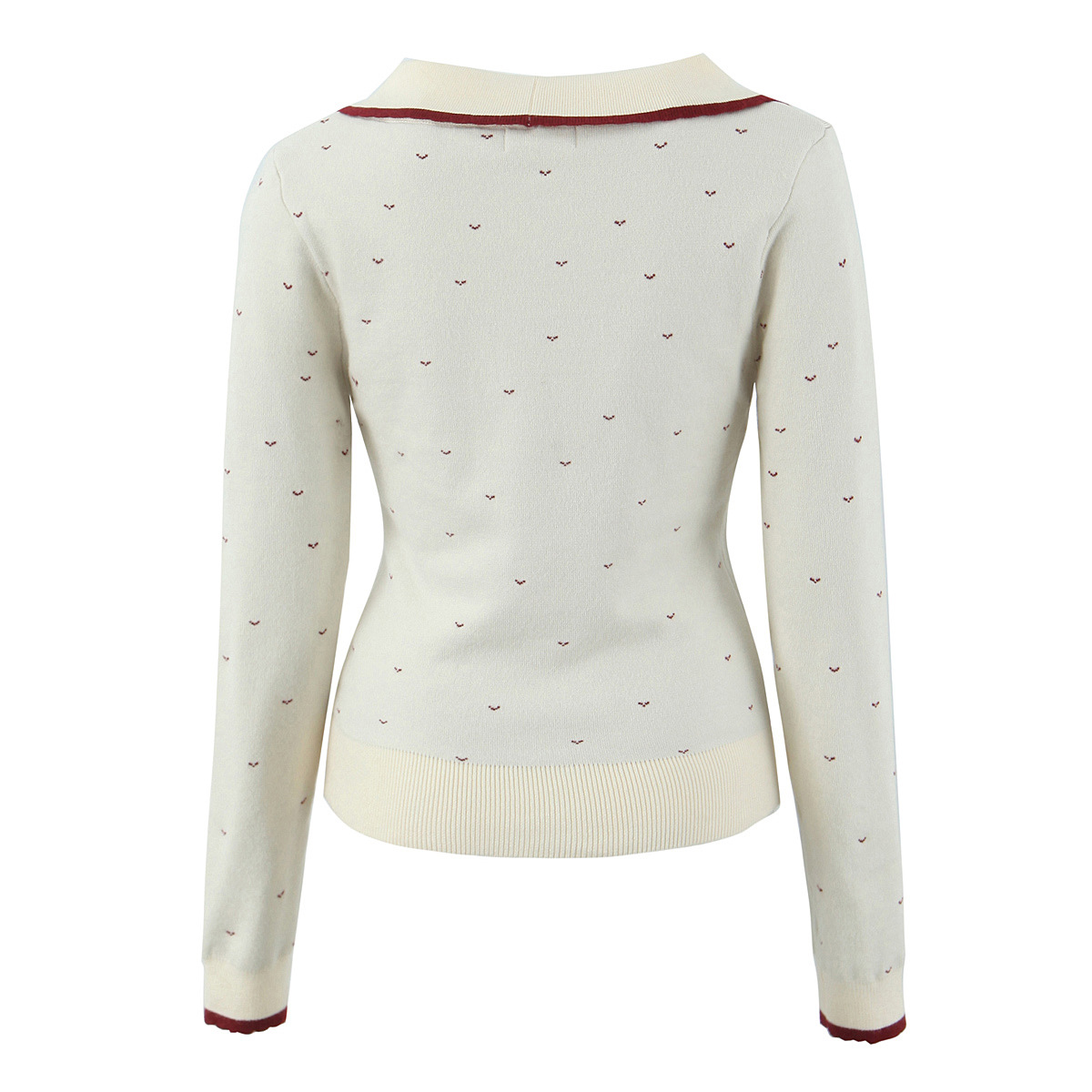 Retro sweet contrast color doll collar knitted cardigan jacket top