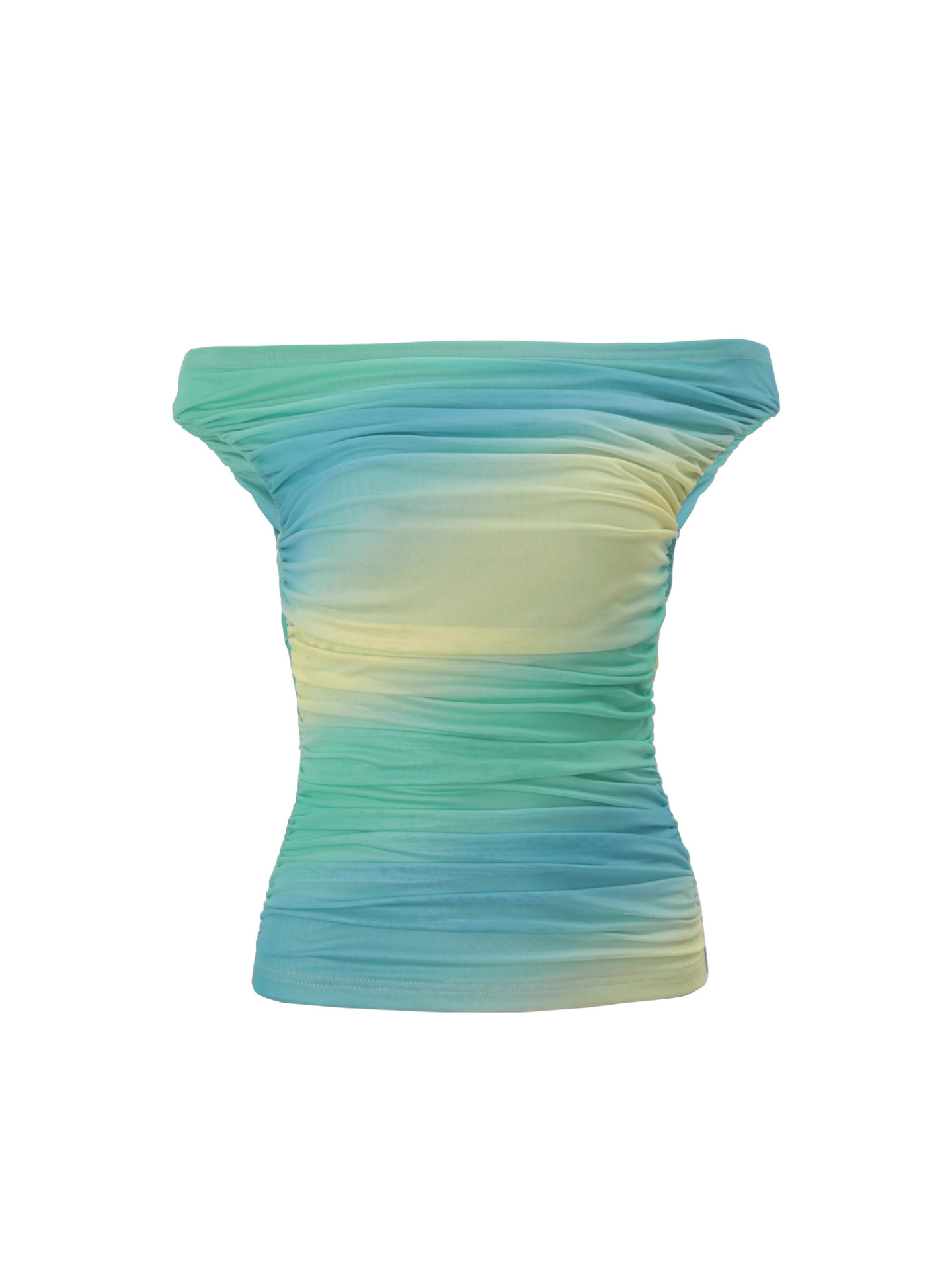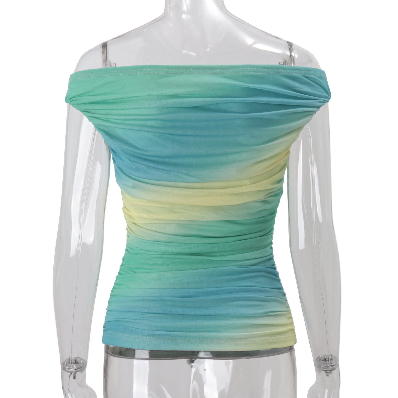 Sexy hot girl one-shoulder gradient color matching short vest top