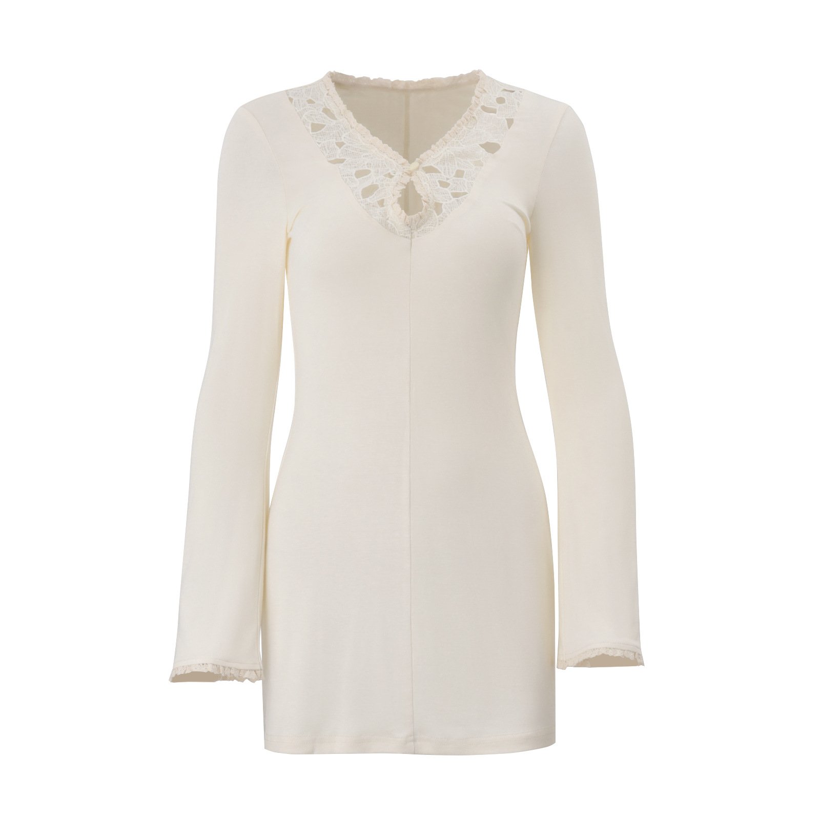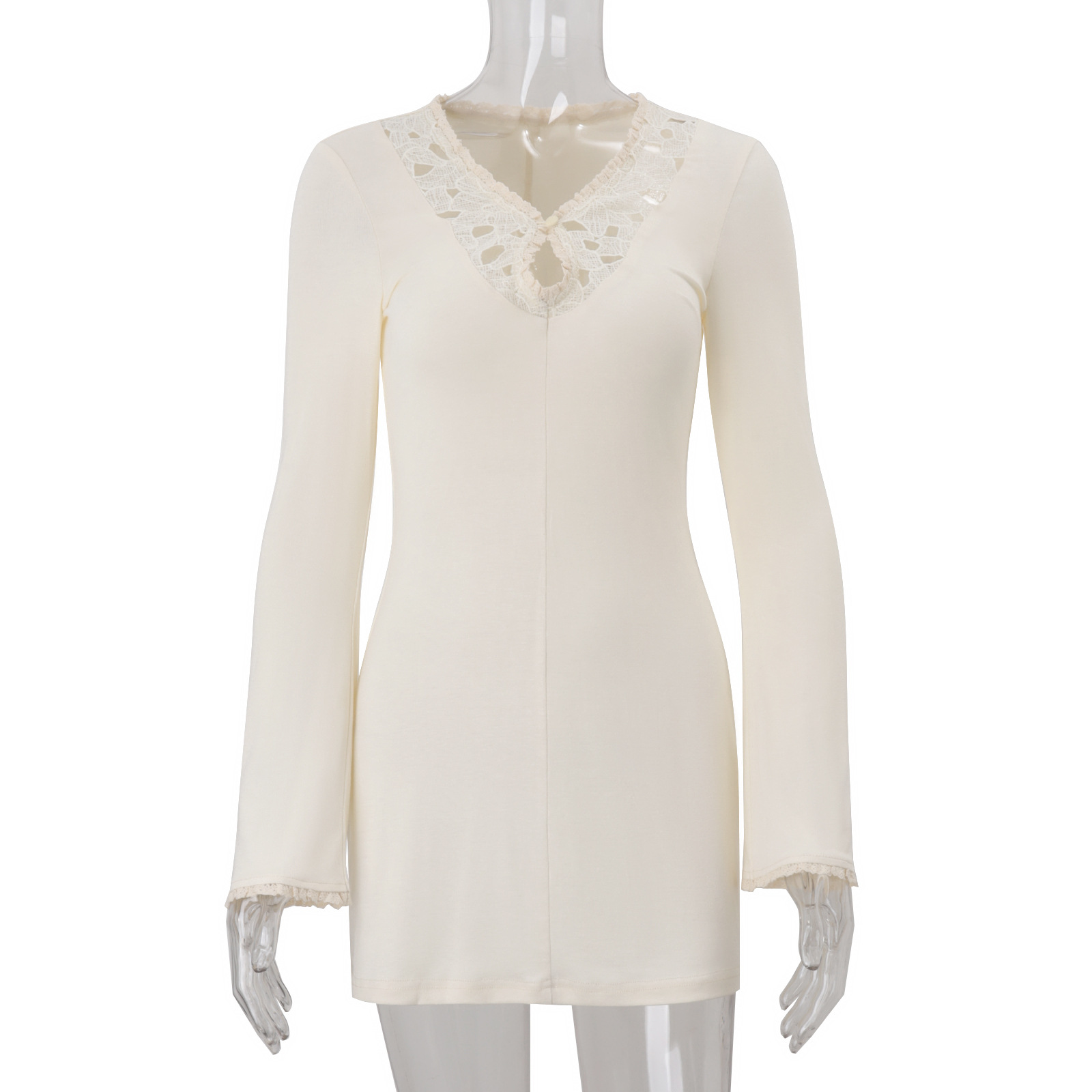 Sexy lace stitching retro solid color knitted long-sleeved dress