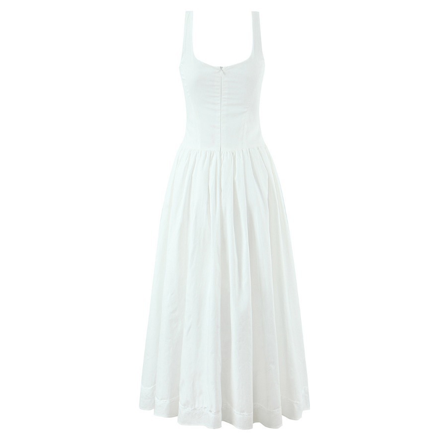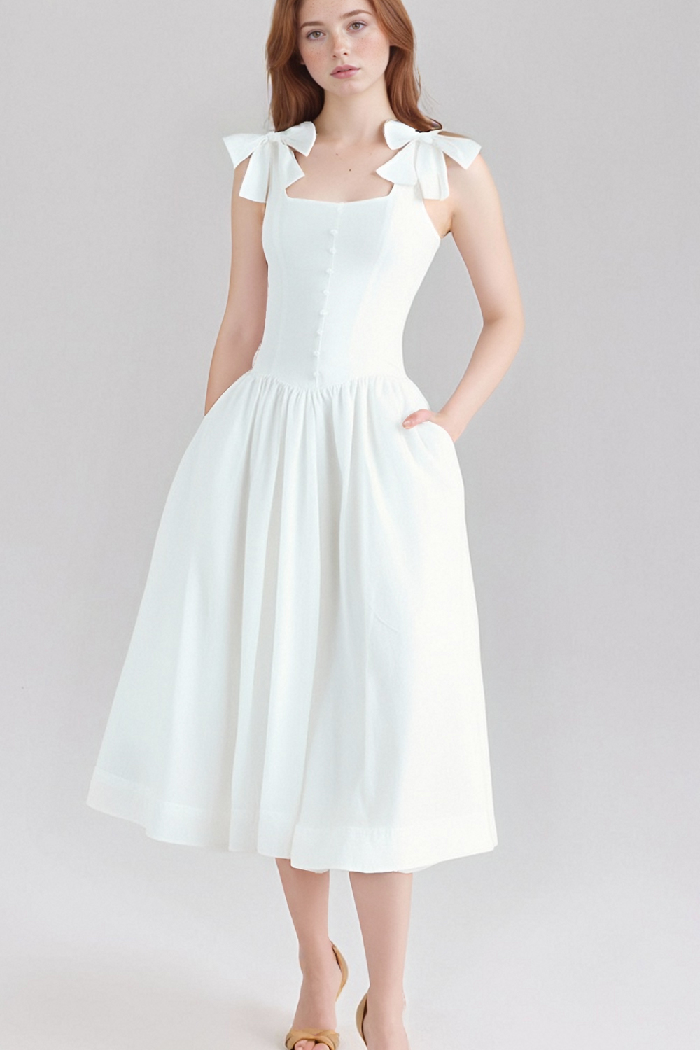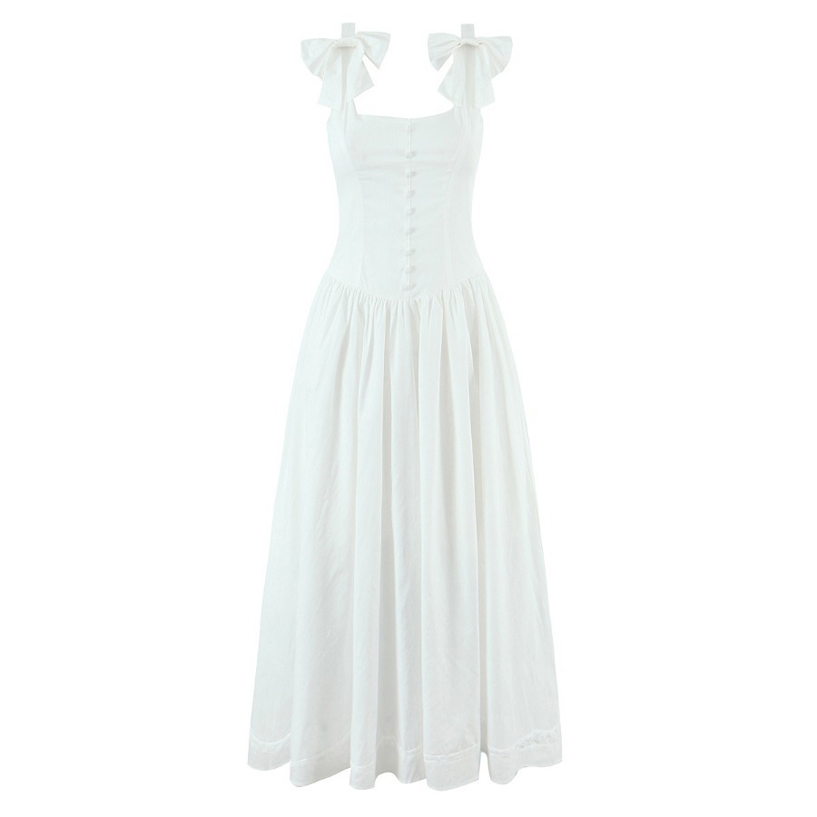 Sweet bow-decorated gentle and elegant U-neck waist suspender dress