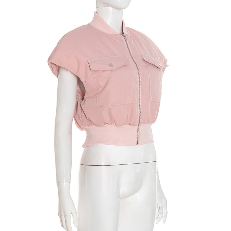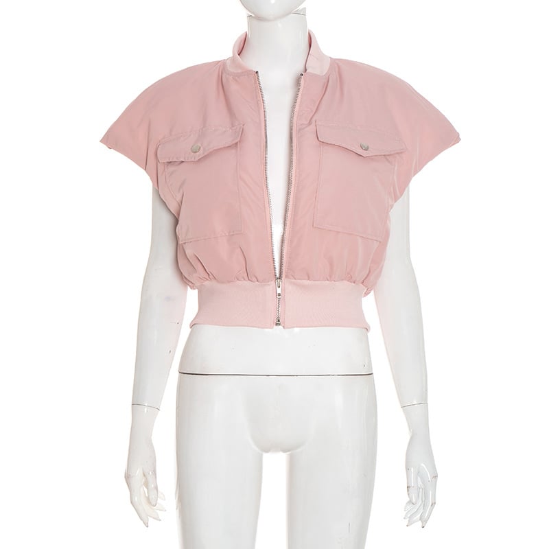 New autumn and winter zipper cardigan pocket waist-baring short cotton coat