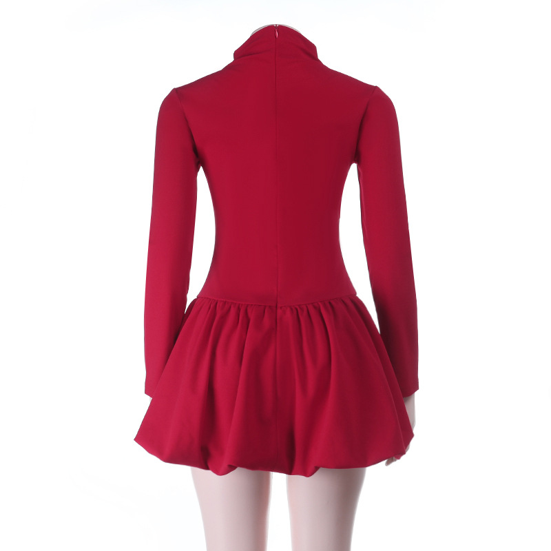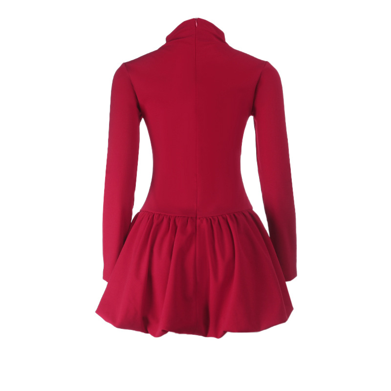 Irregular hem high collar dress with umbrella skirt
