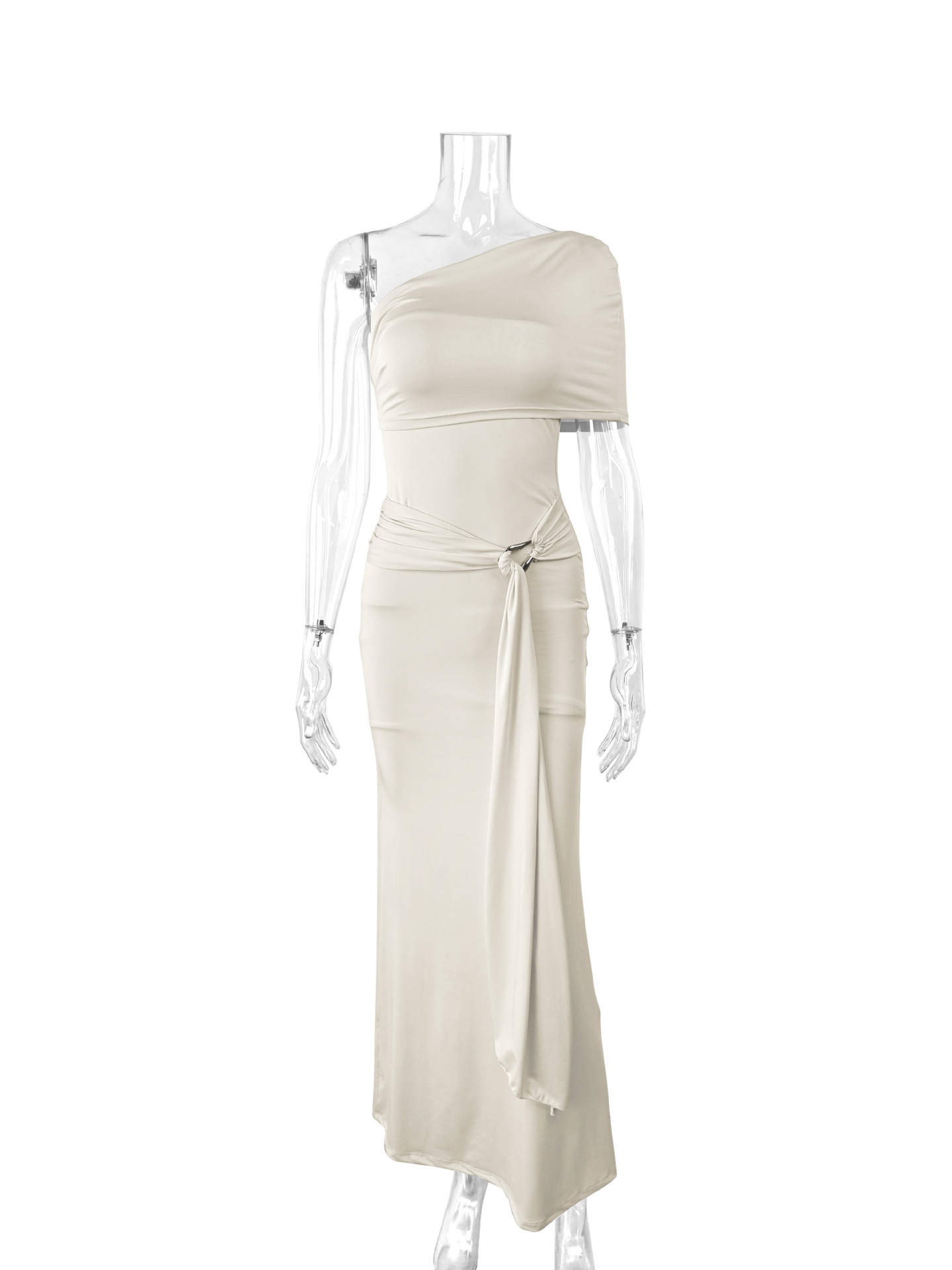 Sexy off-shoulder dress with ribbons and pleated maxi dress