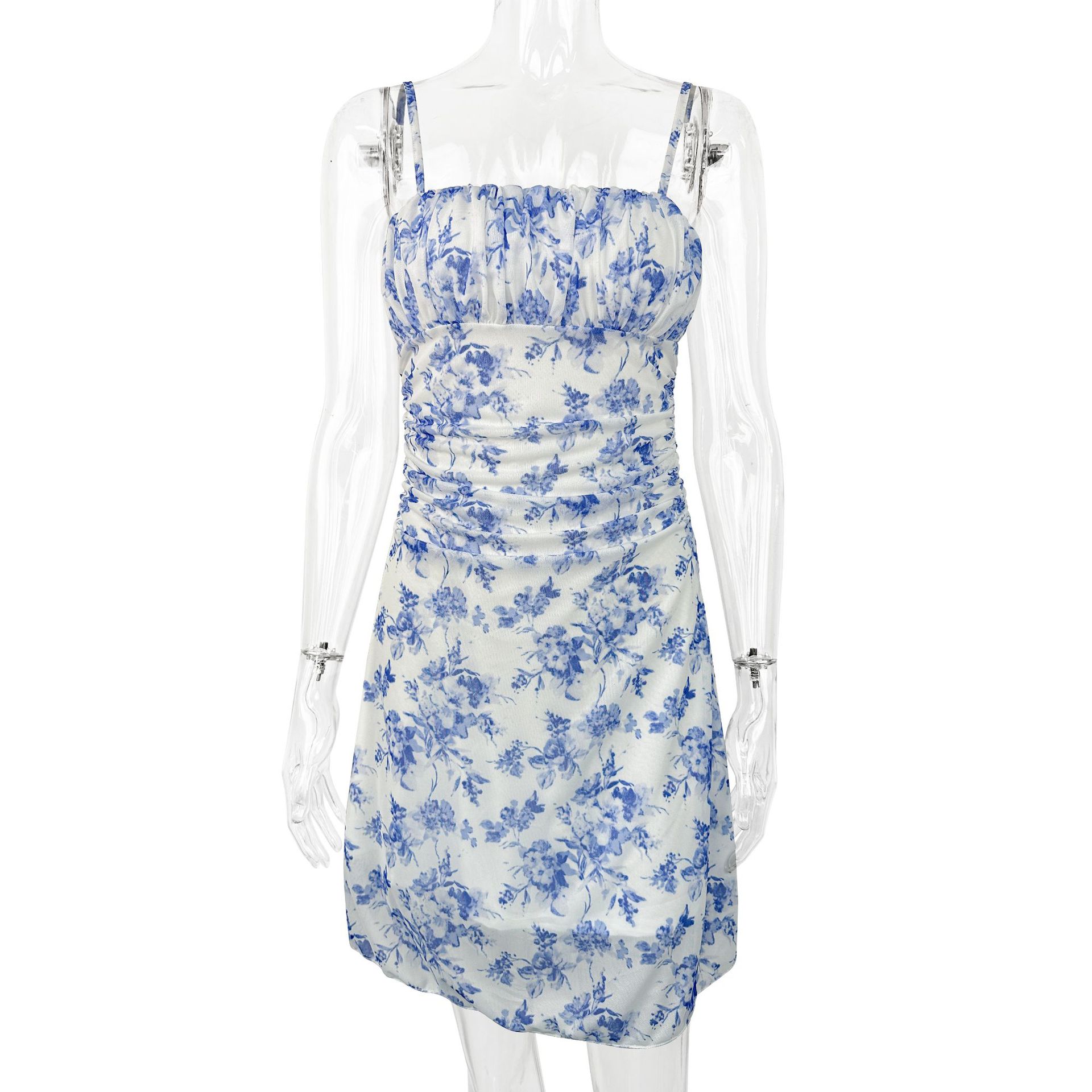Summer seaside suspender dress for women sexy floral suspender waist dress