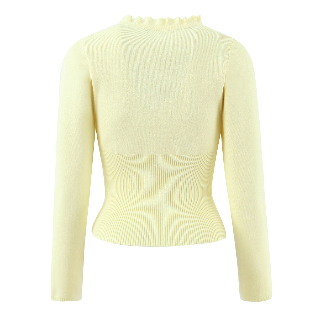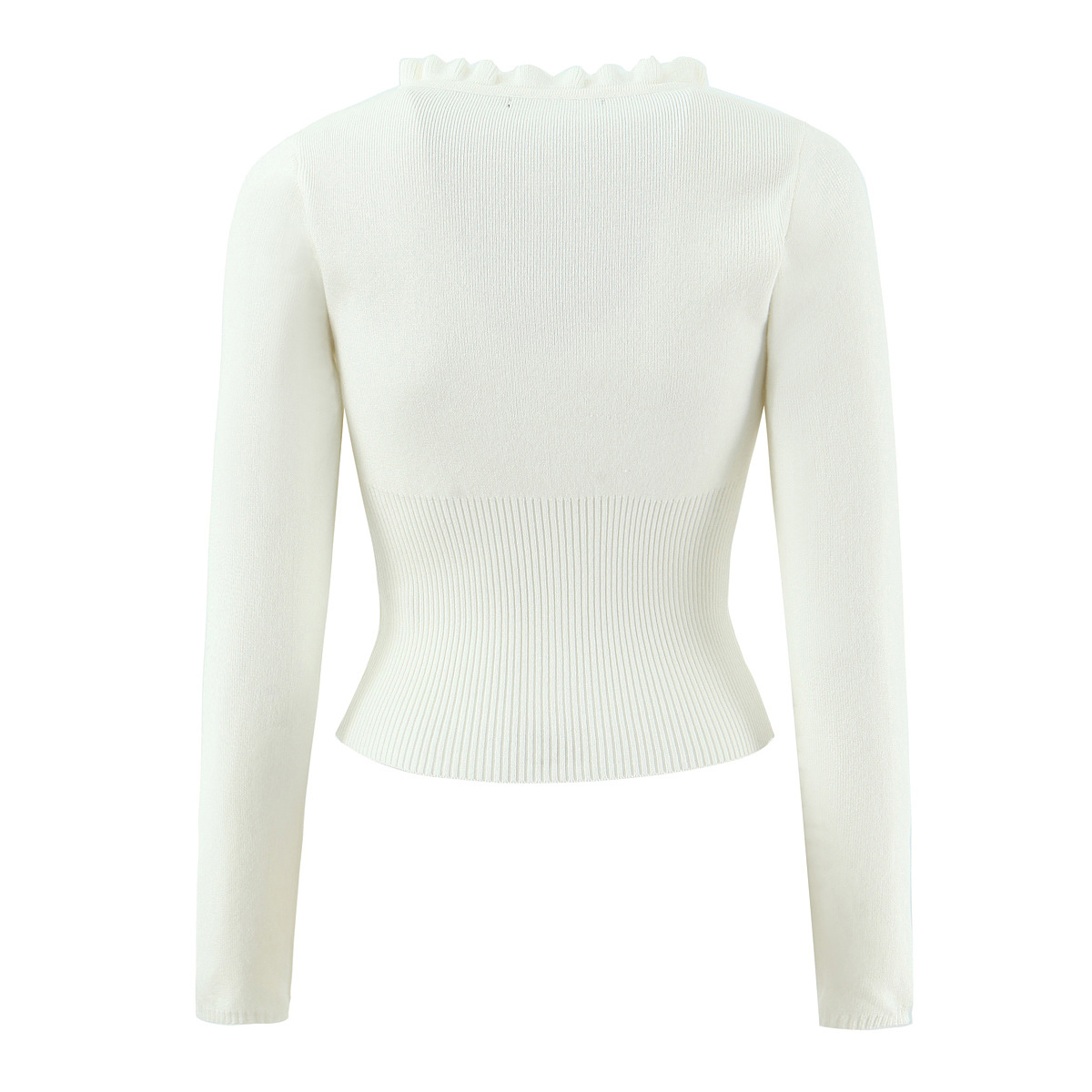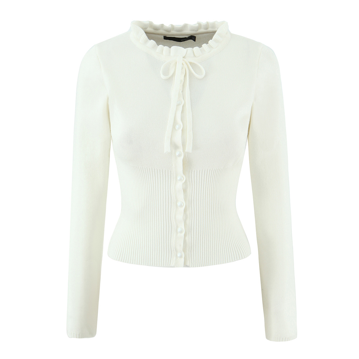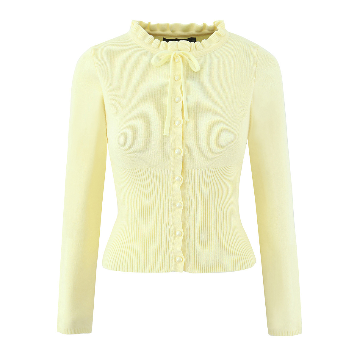 Lace round neck long sleeve single breasted elastic waist tie cardigan sweater
