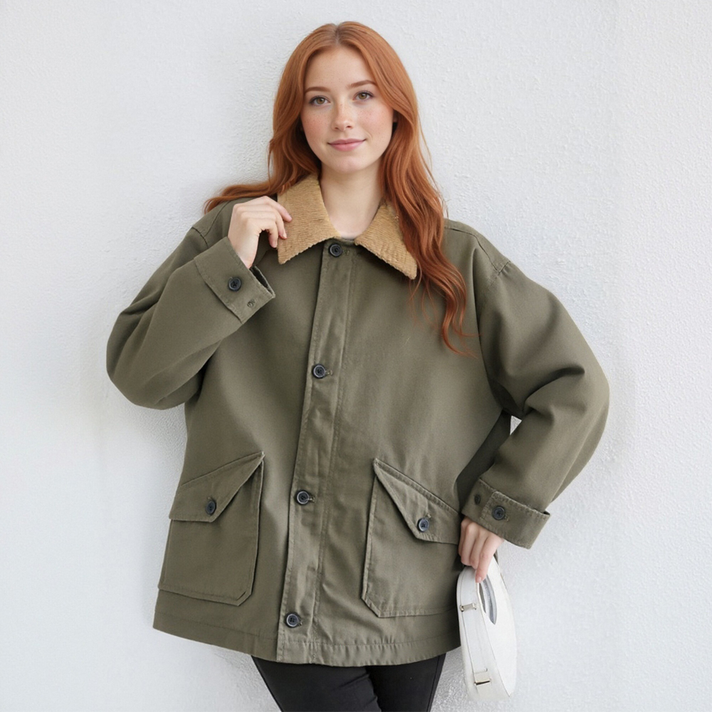 Loose oversized short comfortable windbreaker canvas jacket