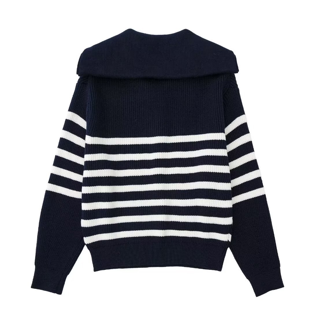 Fashion loose half-zip lapel loose pullover striped sweater cardigan