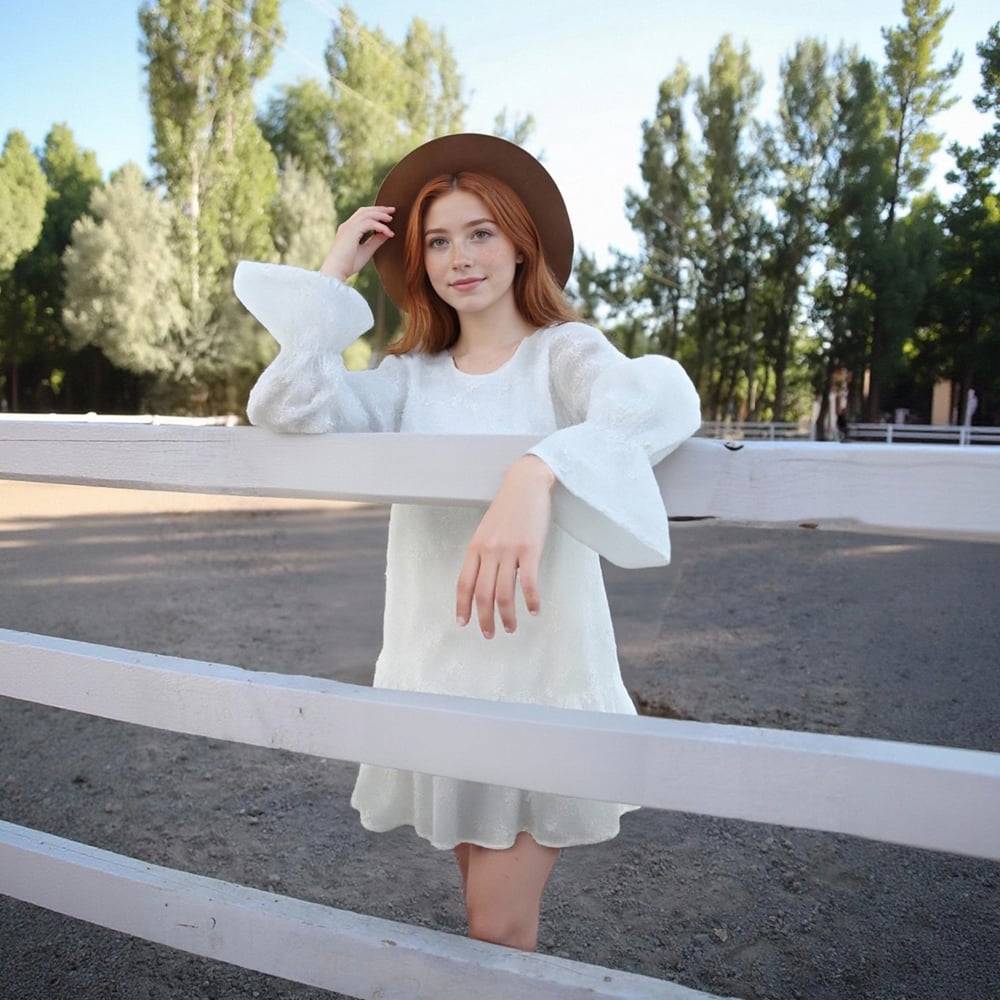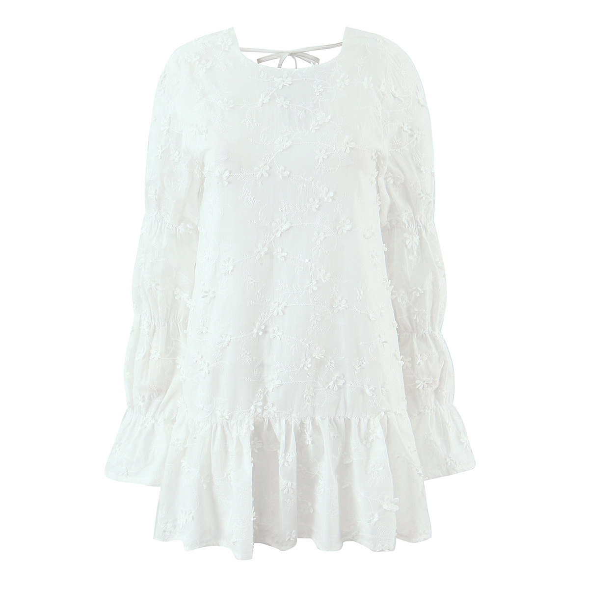 Sexy halter-back horseshoe-sleeve short dress with embroidered three-dimensional flowers