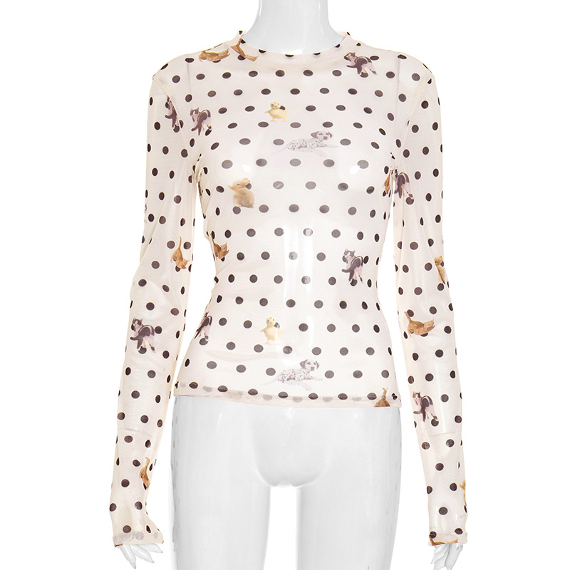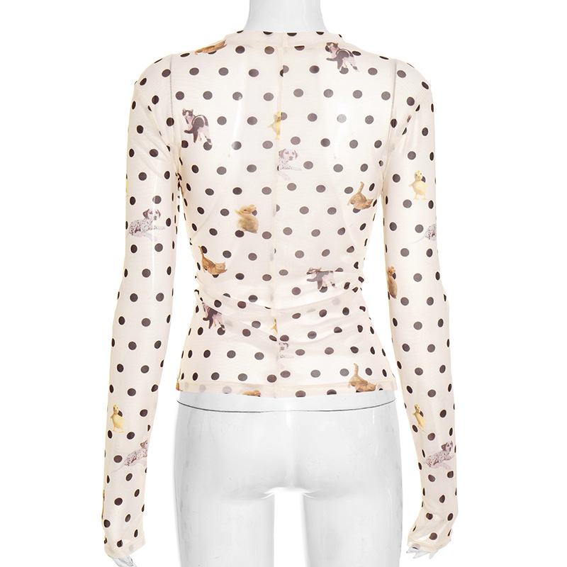 Versatile Animal Polka Dot Print Waist-Lifted Long-Sleeved Cropped Top