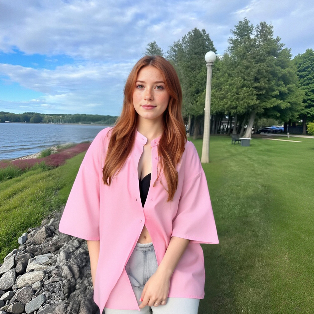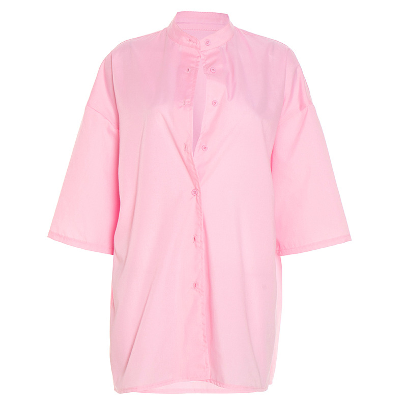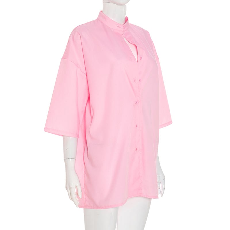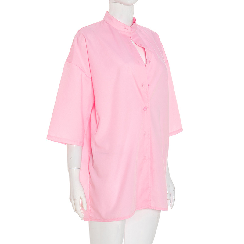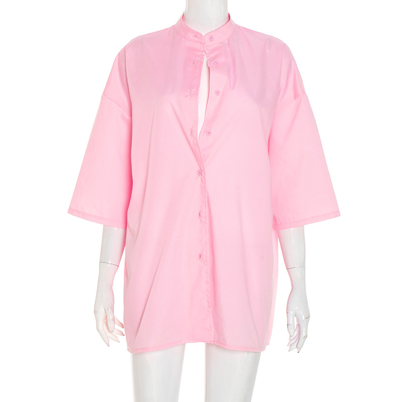 Versatile casual solid color long short-sleeved single-breasted shirt