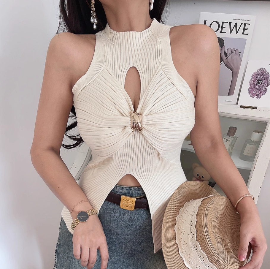 Sleeveless Twisted Vest Women's Temperament Simple Knitted Sweater Top