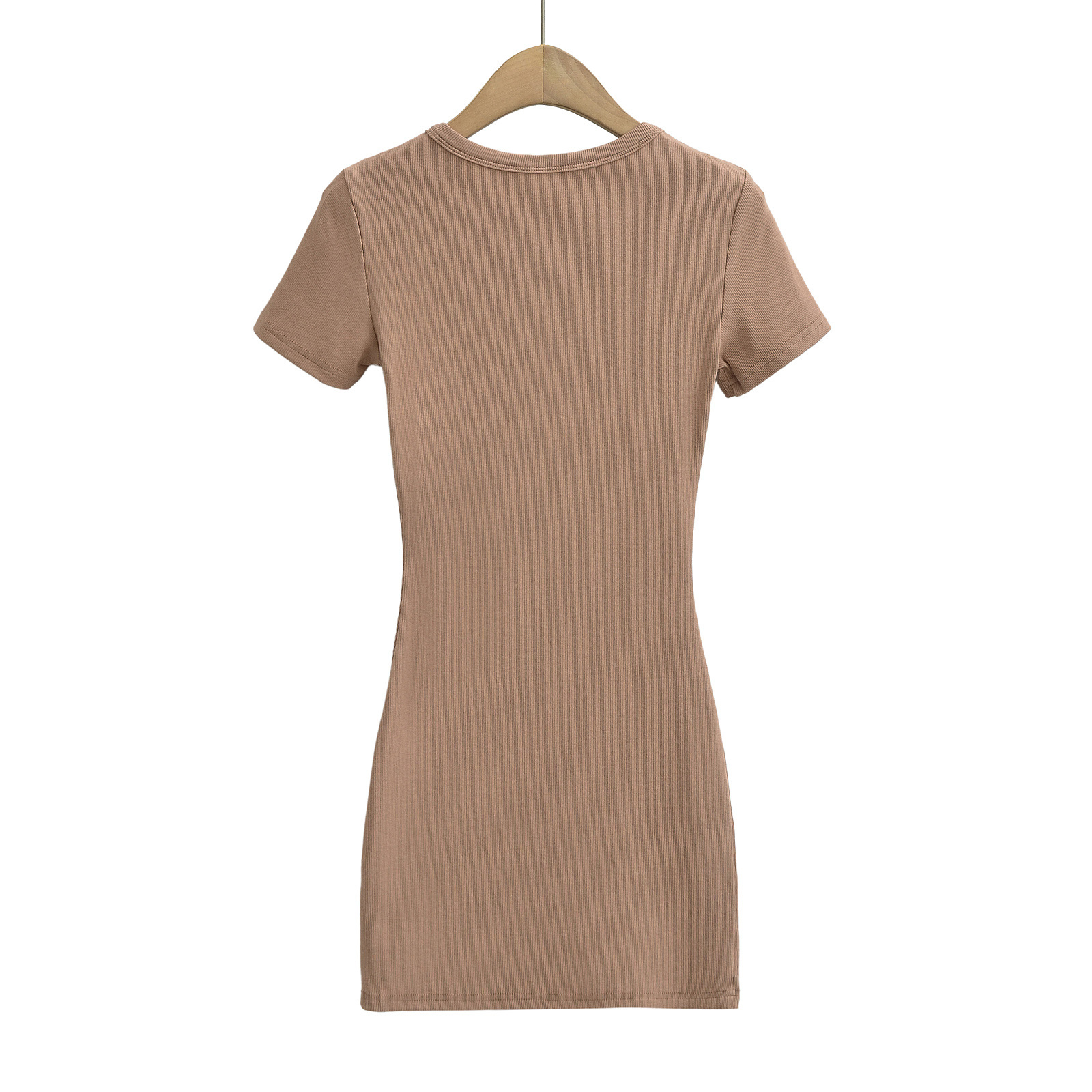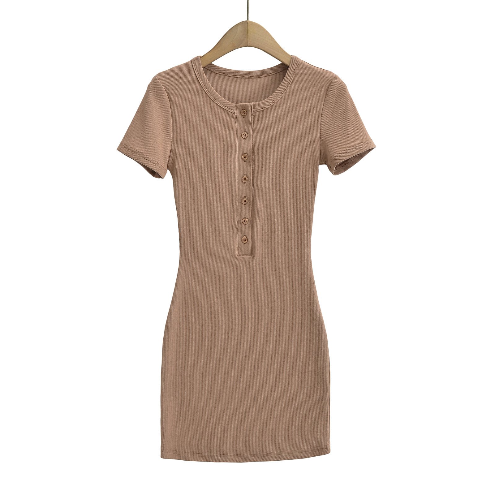 Round neck seven-button slim waist short-sleeved dress