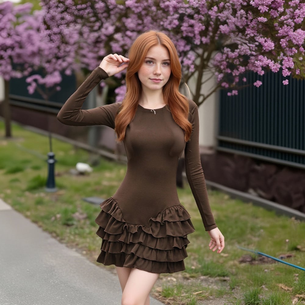 Ruffled lace paneled round neck long-sleeved tutu dress