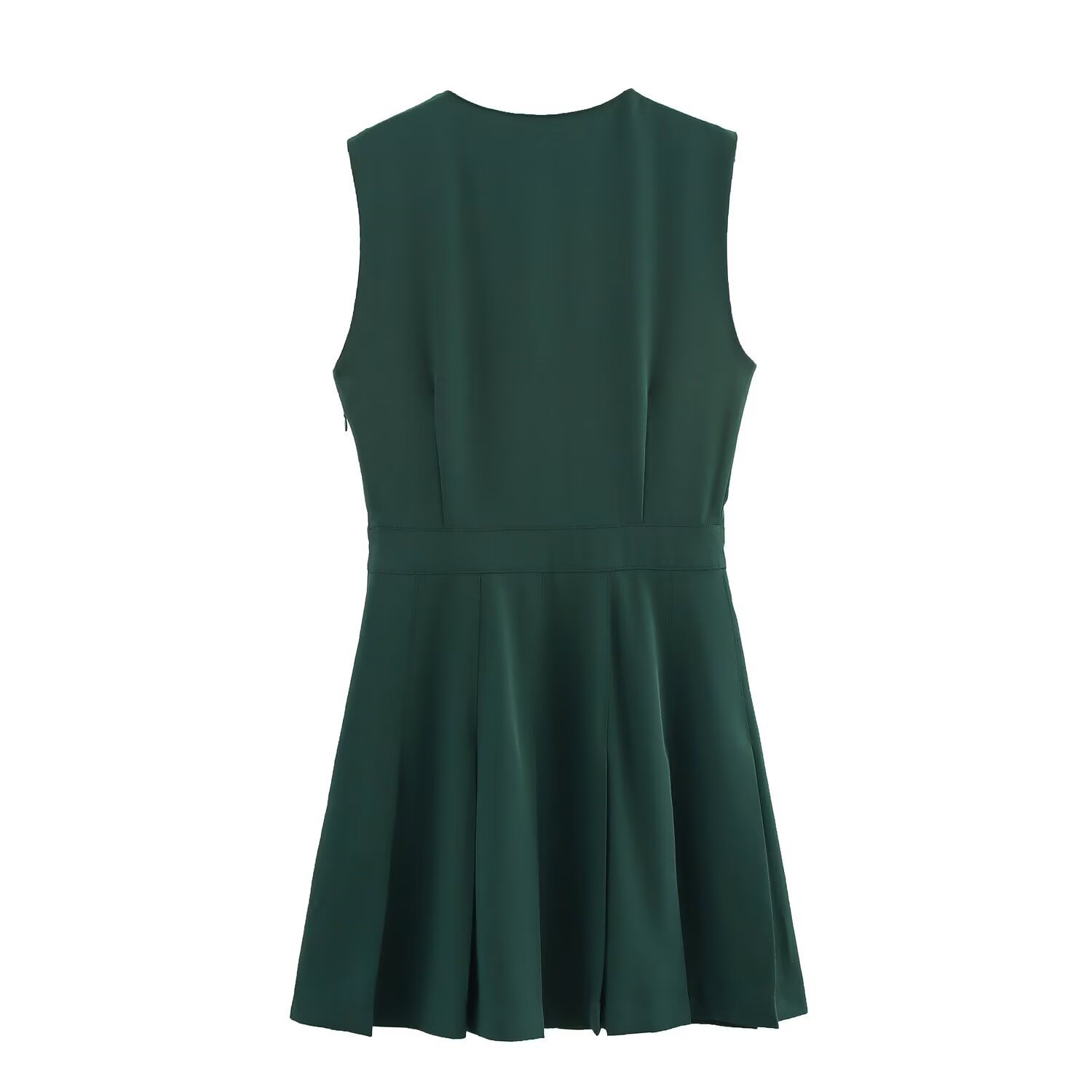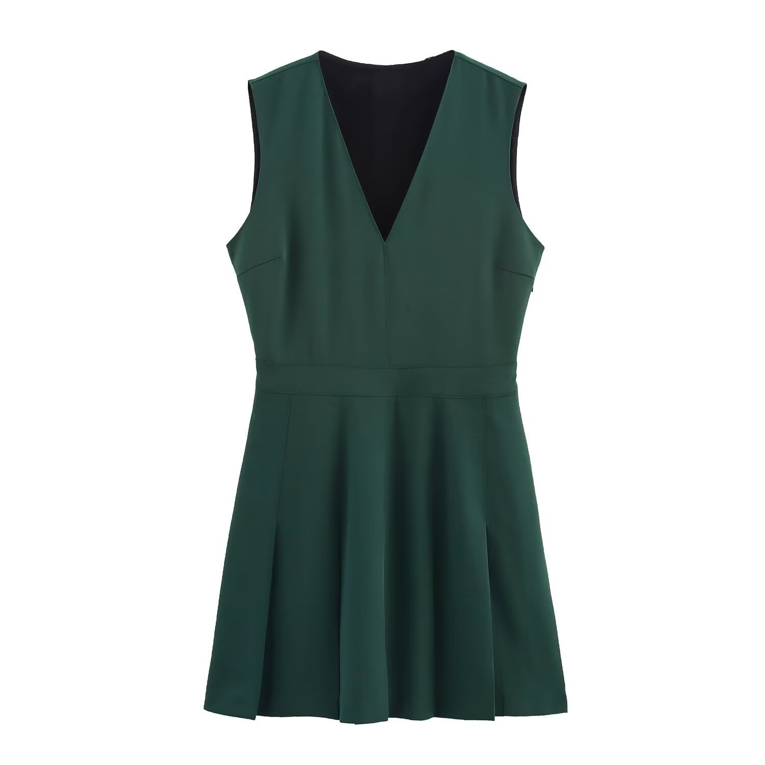 Sexy V-neck crepe mini dress with pleated waist