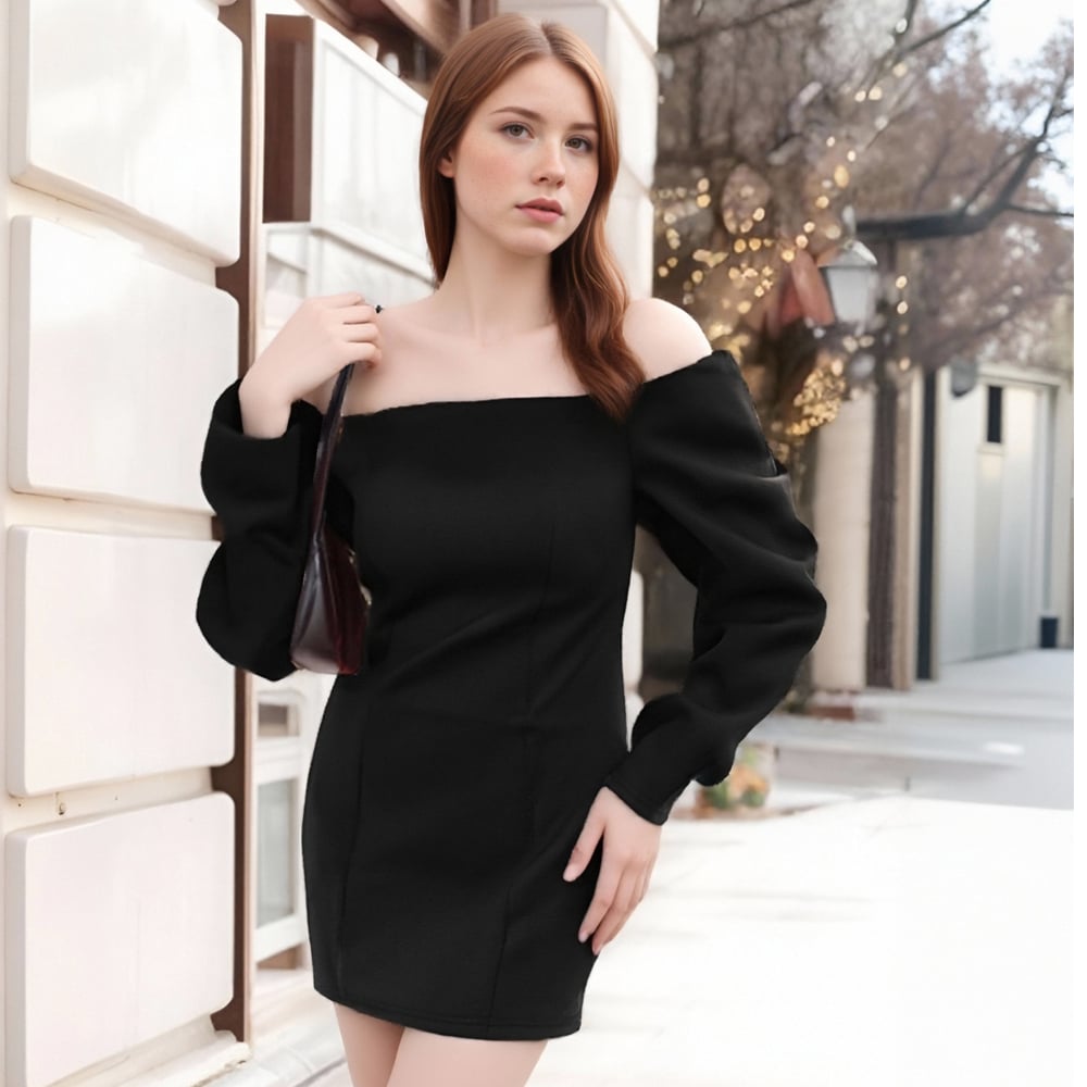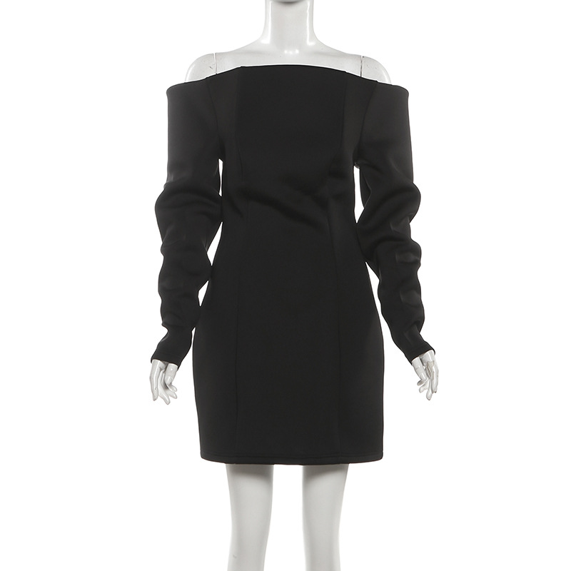 Fashionable and sexy off-shoulder slimming long-sleeved bodycon short dress